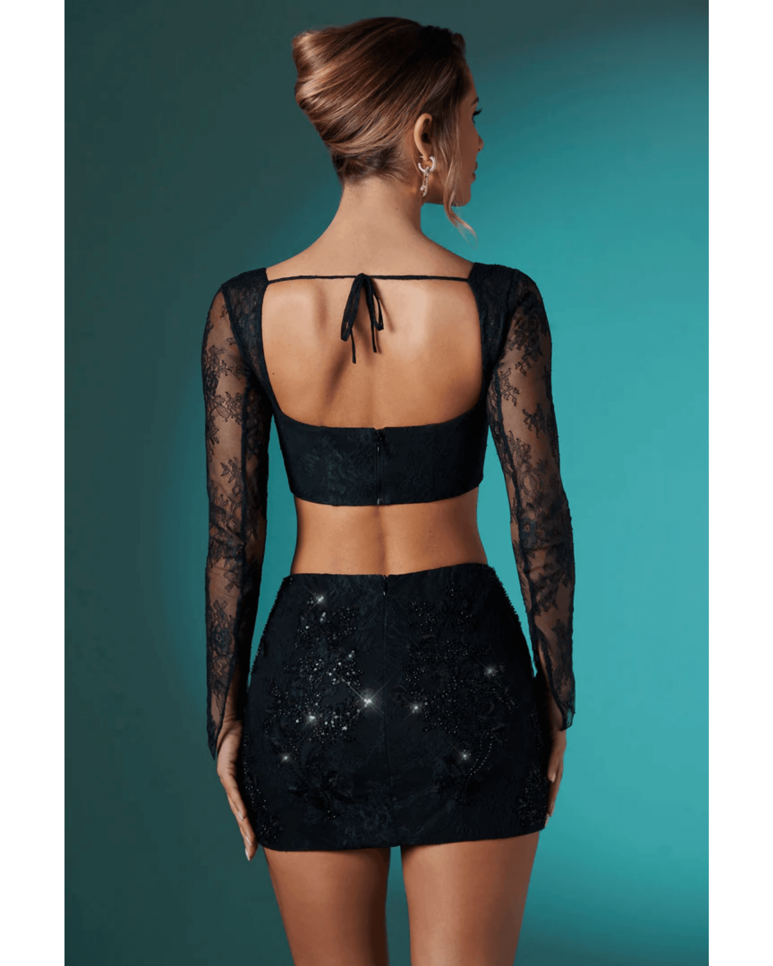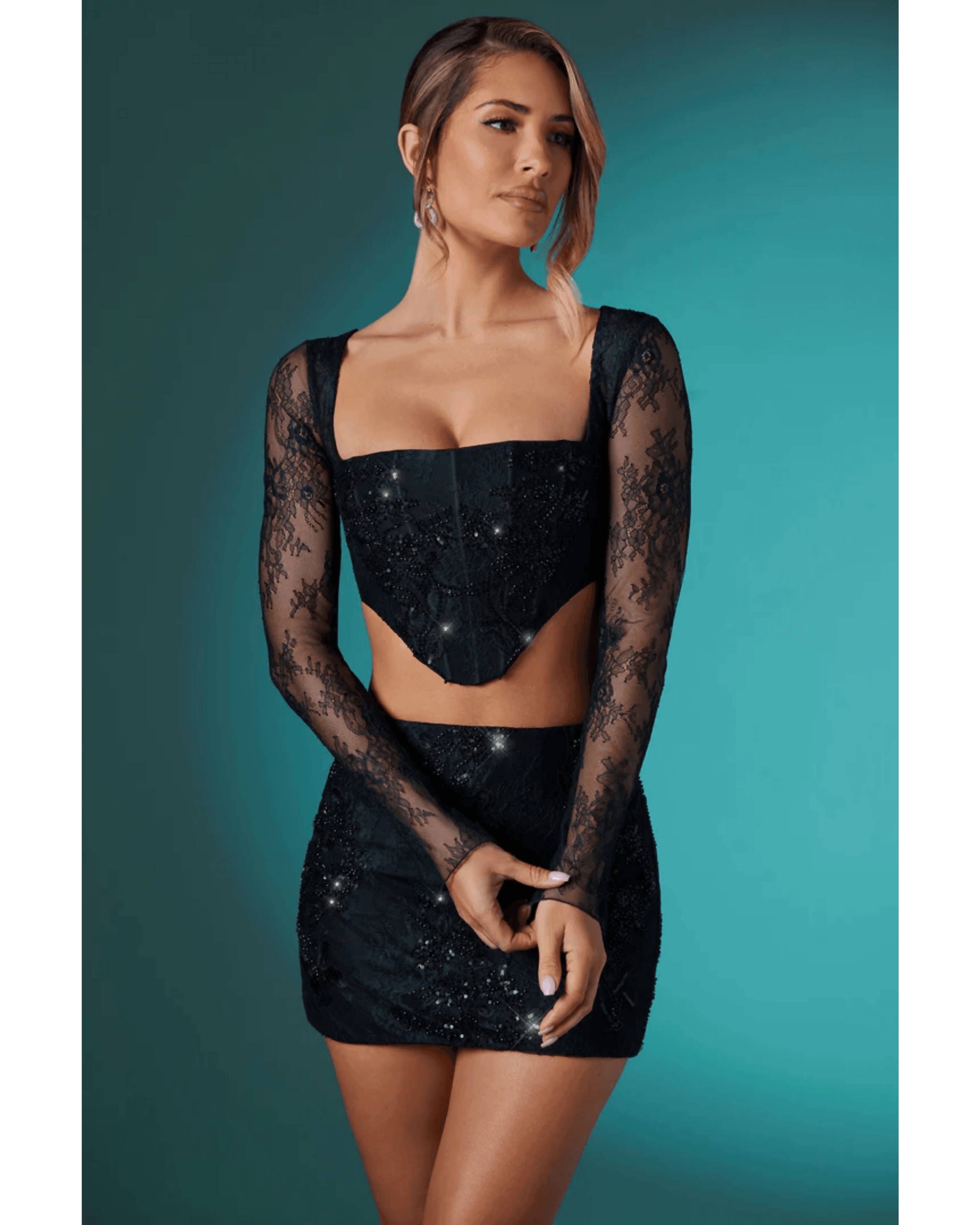 Neve Long Sleeve Corset Top & Romy Embellished Mini Skirt Set