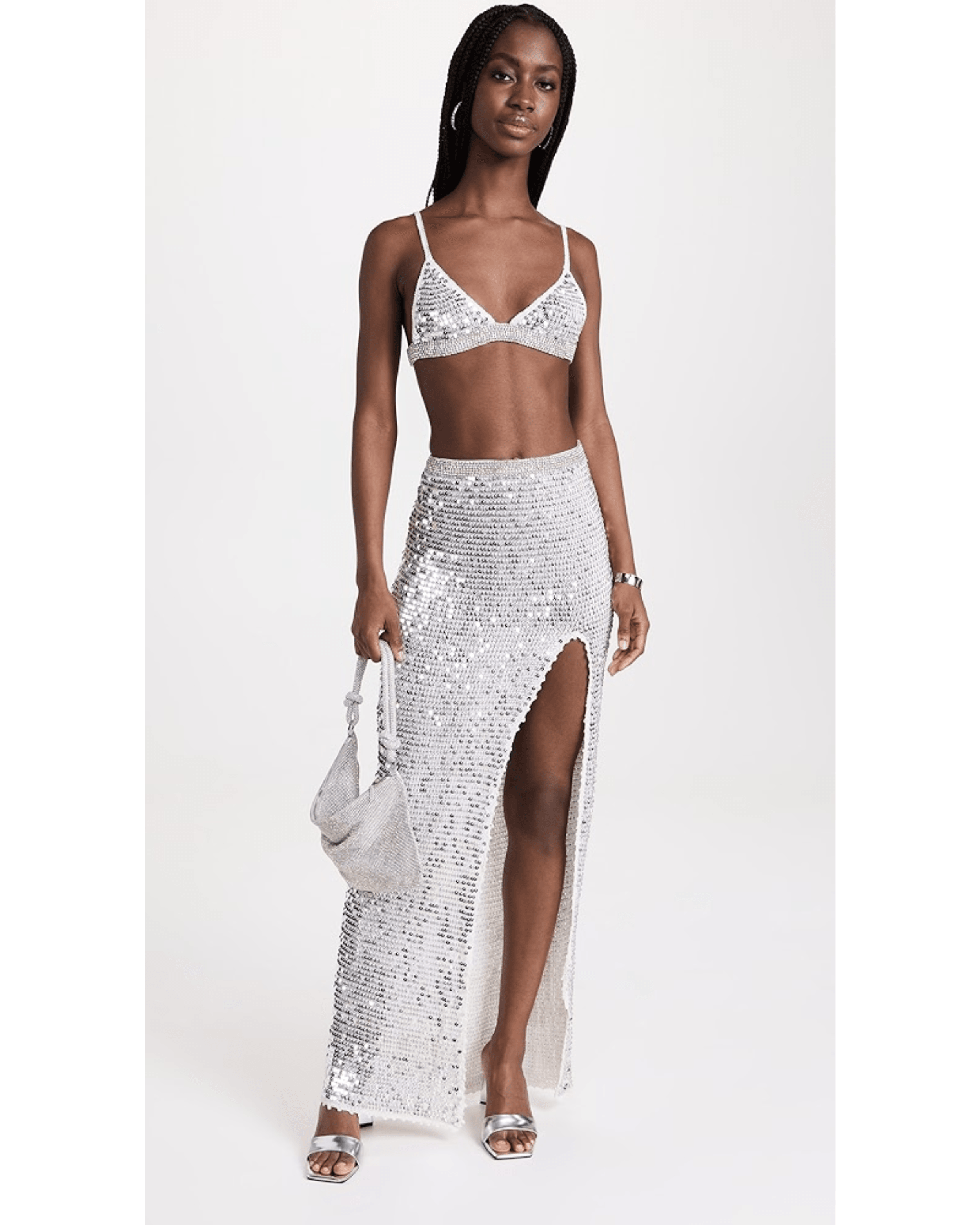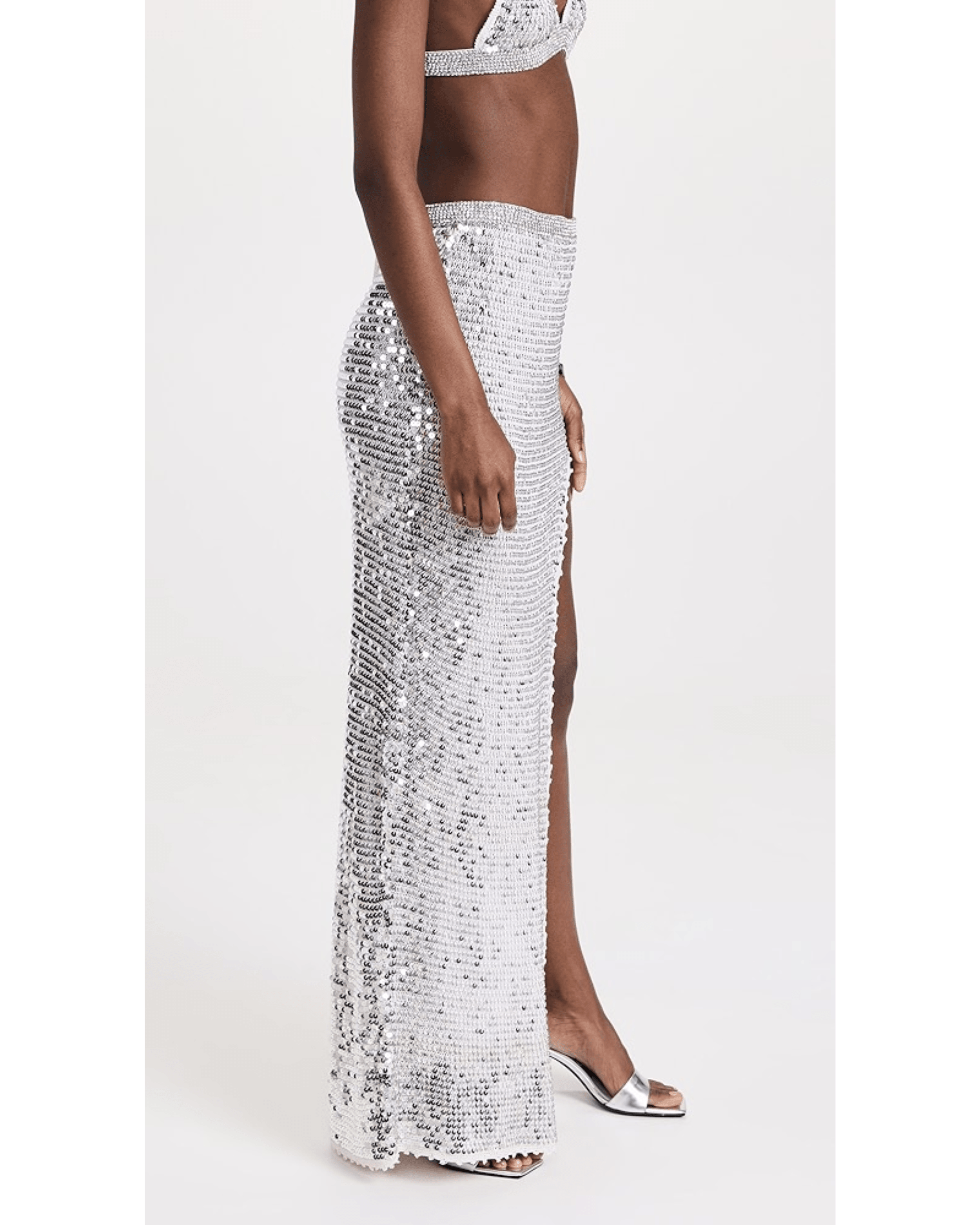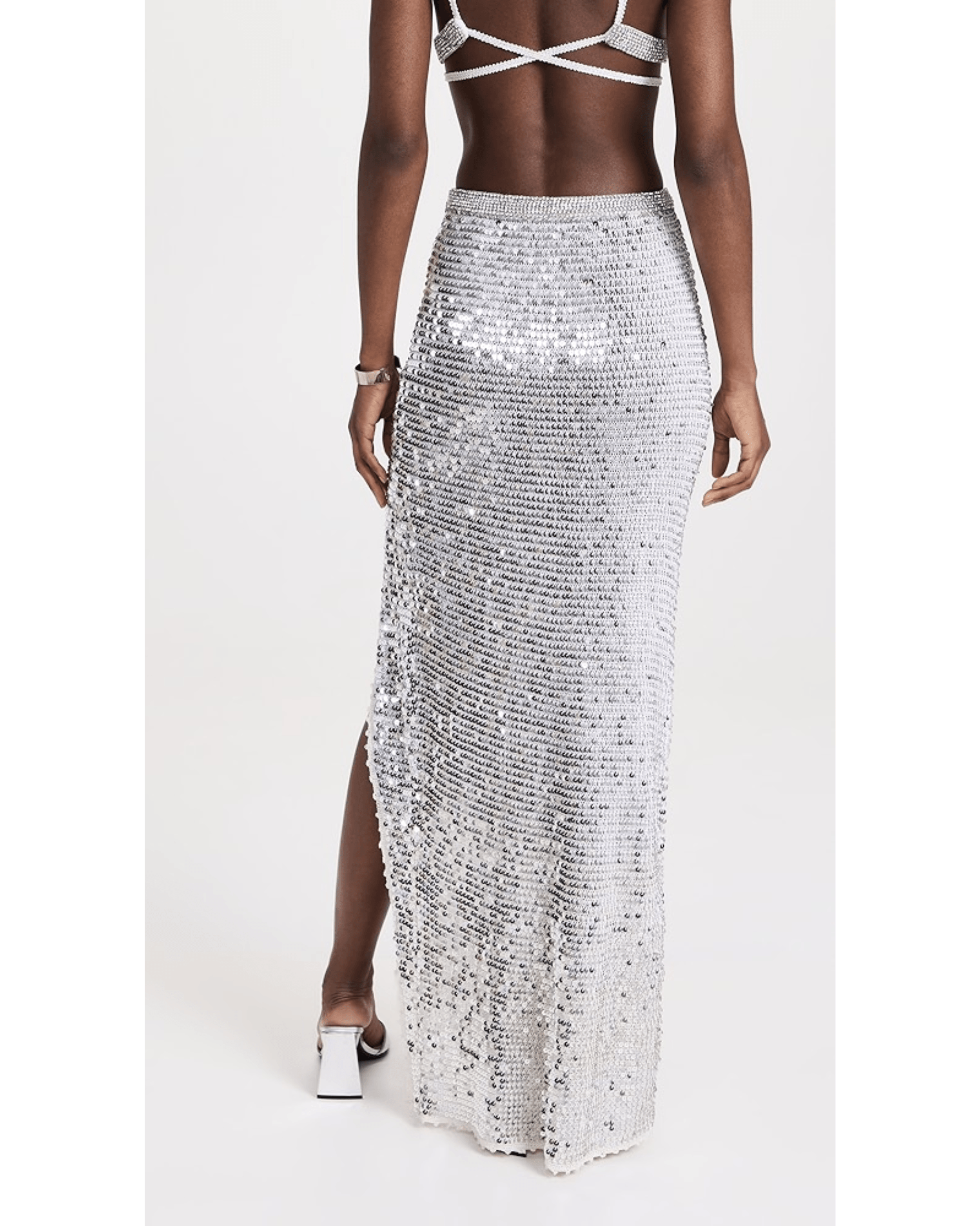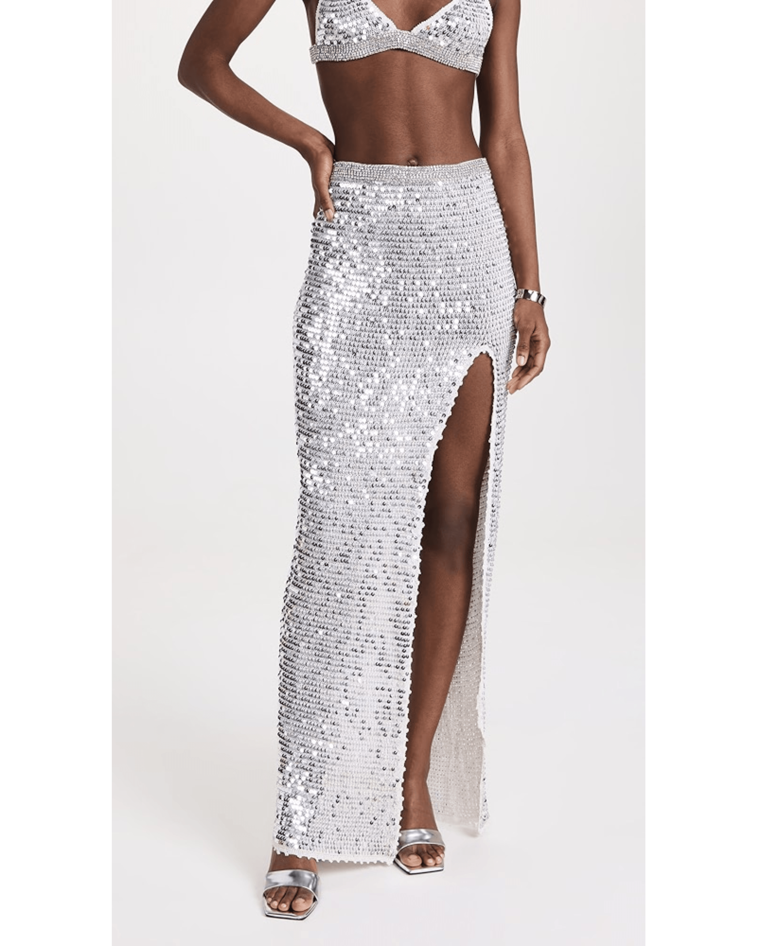 Flavia Skirt & Arielle Crochet Bra. Crafted with delicate crochet and statement sequins, this breezy silhouette is a wardrobe must-have that’ll have you shimmering on the dance floor.