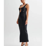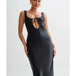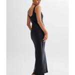 The AUBRIE is an elegant satin maxi dress that features a scooped neckline on the front and the back, as well as a front keyhole with ties. A long slip dress with a relaxed fit, it's cut from the softest satin to deliver an ethereal look for every event.