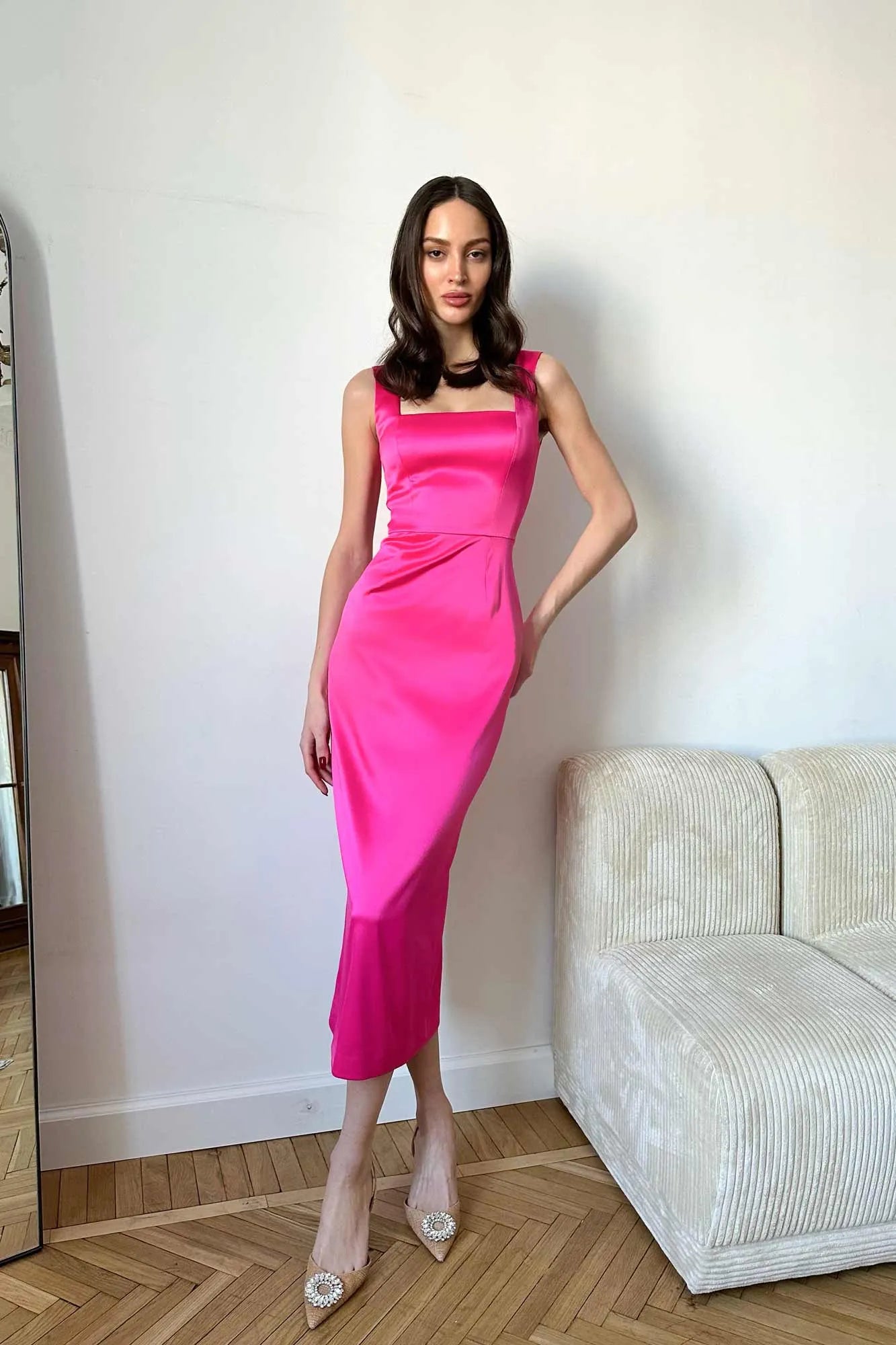 Midi Dress with A Square Neckline