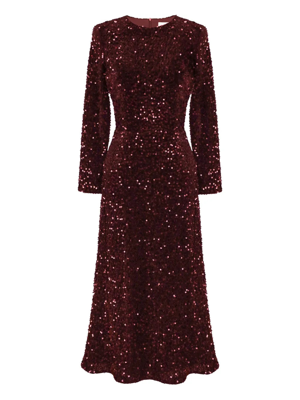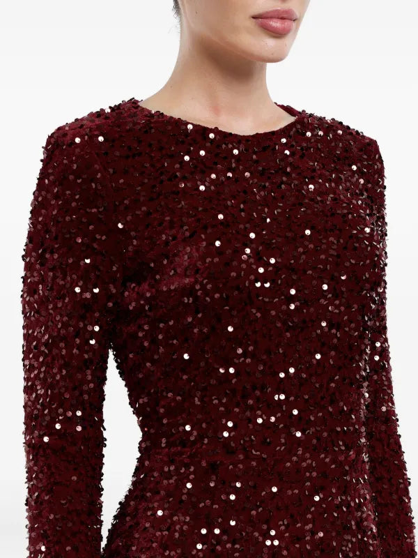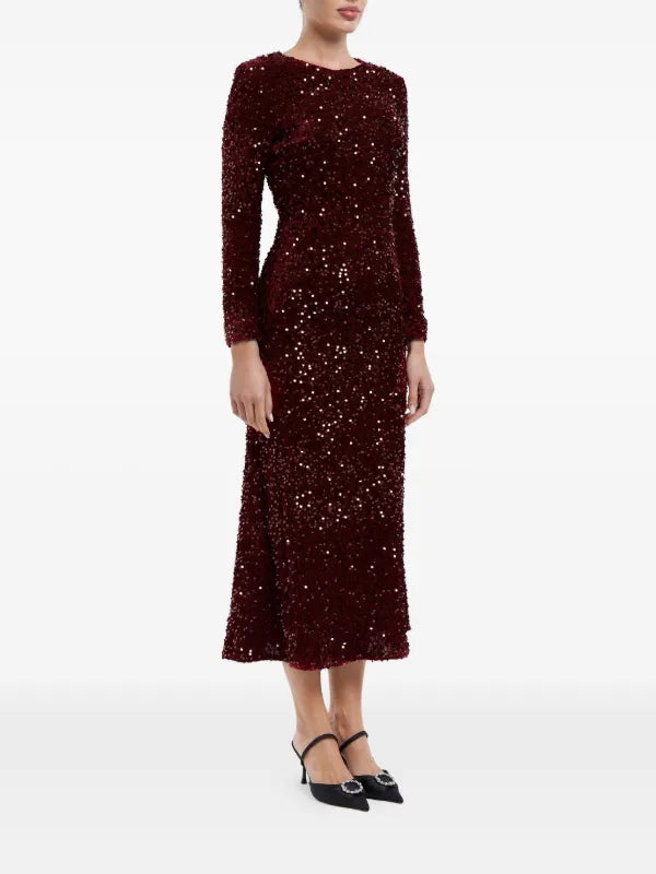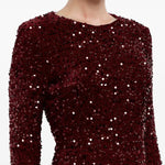 Sequin Decorated Velvet Long Sleeve Midi Dress