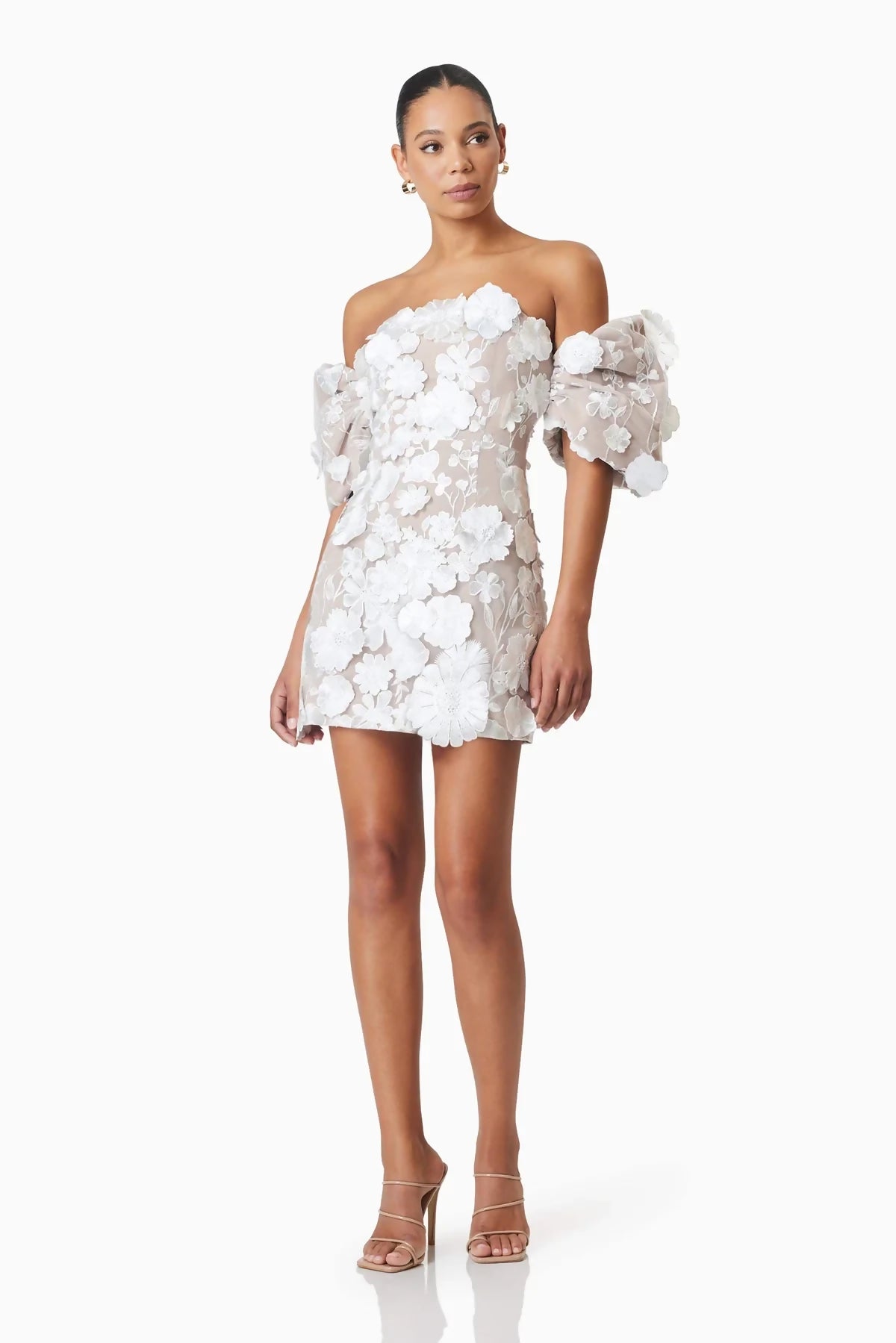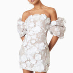 The off-the-shoulder neckline adds a touch of allure, gracefully framing your collarbones and shoulders, while the puff sleeves exude romance and playfulness. Designed for both style and comfort, the invisible back zipper closure ensures a seamless fit, allowing you to slip into this mini dress effortlessly and dance the night away with ease.