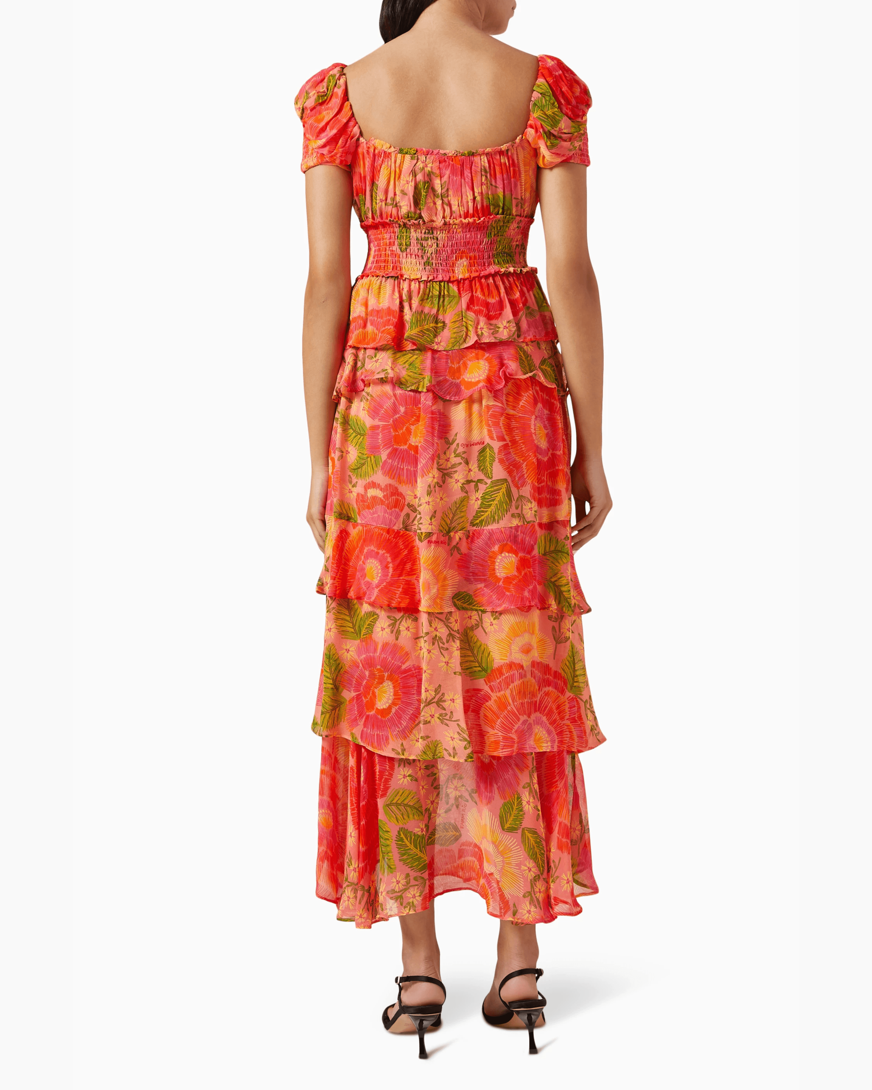 The Blooming Floral maxi dress from Farm Rio is an apt choice for garden parties and other summery occasions. Radiating femininity, its puffed sleeves, smocked waist and floaty layered skirt are illustrated with tropical flowers for a wonderfully vibrant look.
