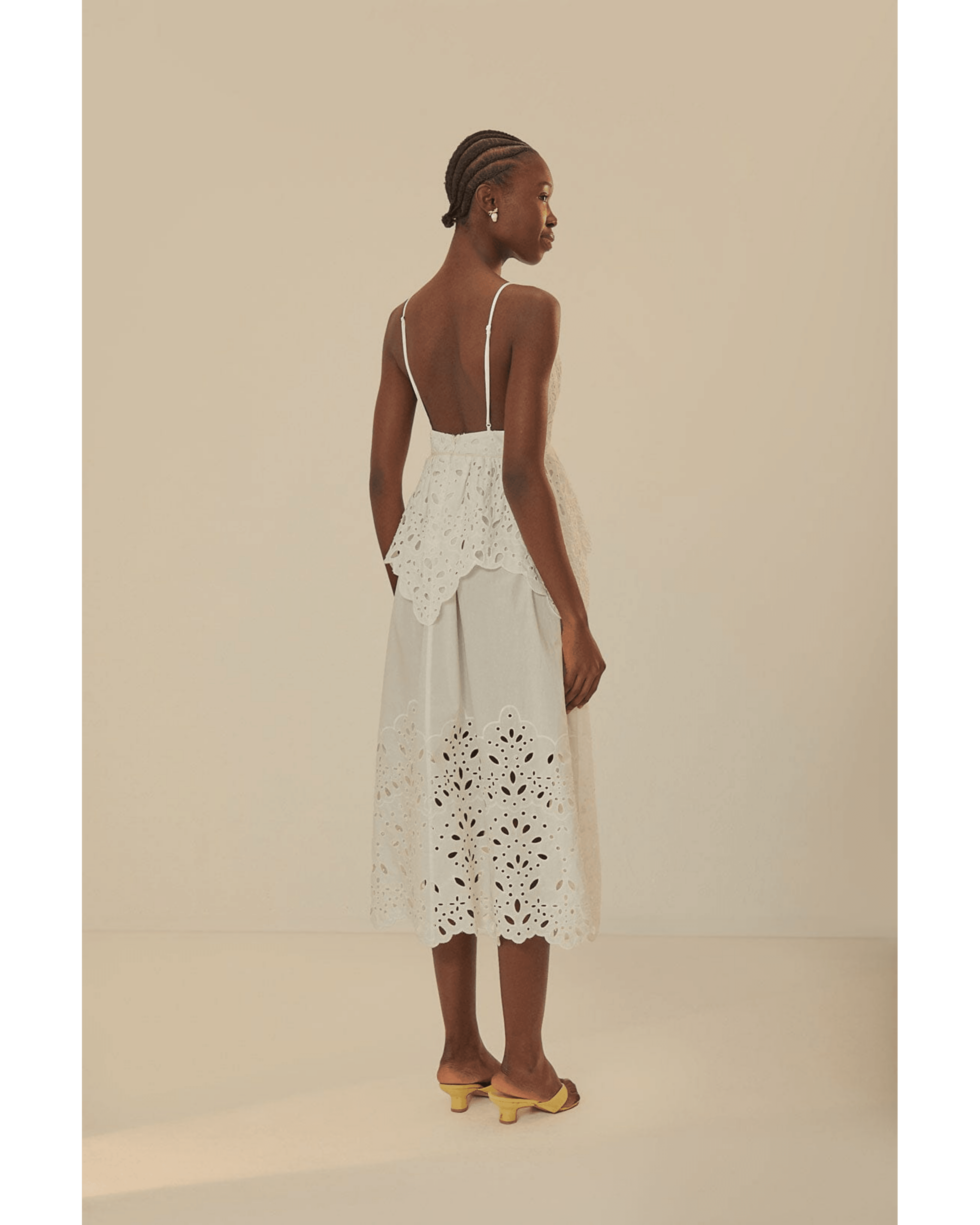 Embrace effortless grace with the White Laise Sleeveless Maxi Dress, showcasing a charming sweetheart neckline and delicate lace detailing. The airy, eyelet fabric creates a beautifully textured silhouette, while the flowing maxi cut sways with every step. This dress radiates a timeless elegance, perfect for sun-soaked days or enchanting evenings. Its romantic allure is completed with slender adjustable straps, ensuring a perfect fit for your breezy adventures.