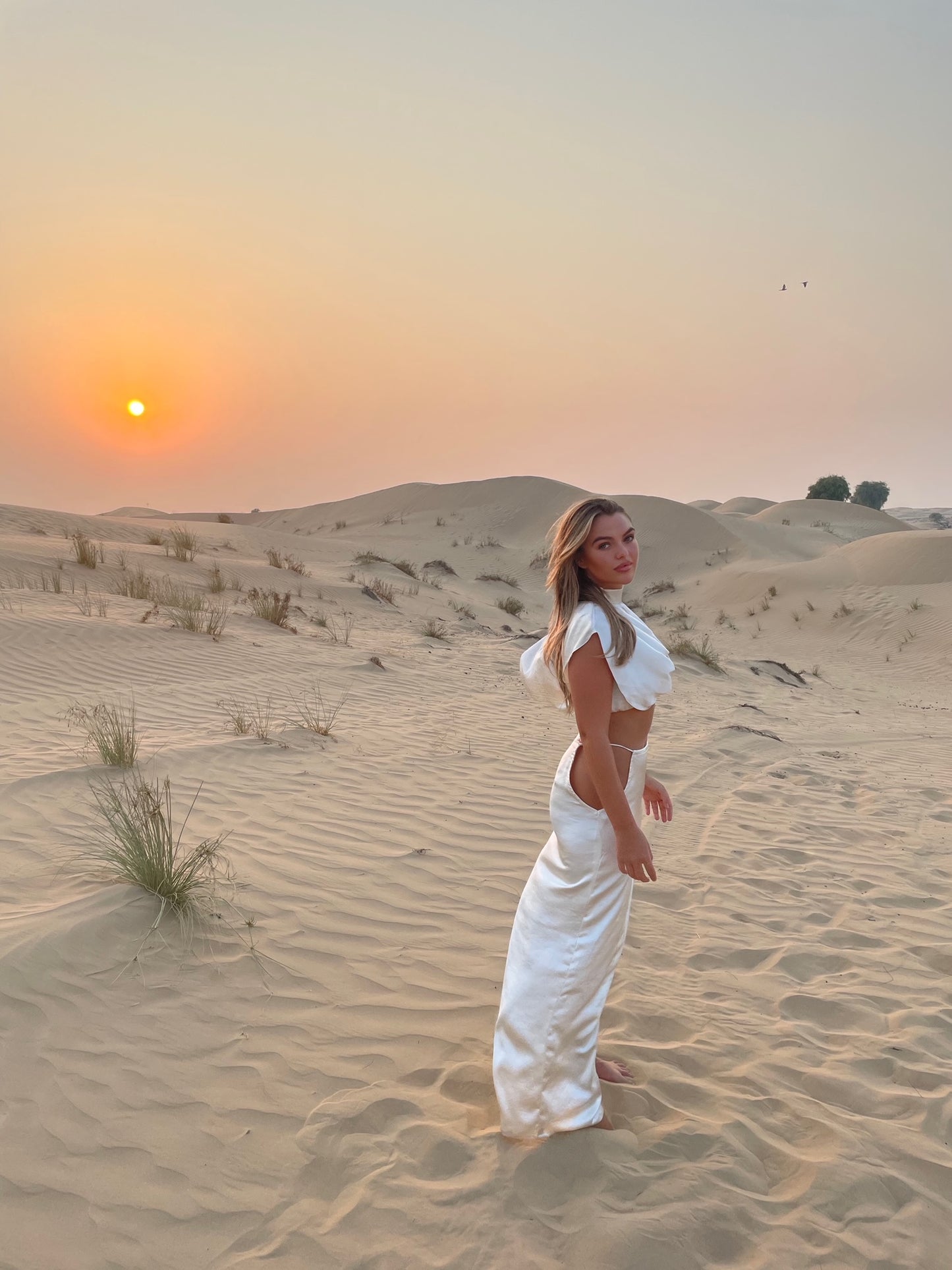 The co-ord of dreams! 'FAYE' our satin two-piece and an adjustable tie-up at the waist skirt, cut-out hips and an added thigh-to-floor leg slit. This skirt comes paired with a shoulder-to-shoulder drape, high-neck and cropped blouse.