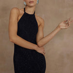 Crafted from a luxe knit, adorned with micro sequins, our Natino Midi Dress is a chic get away piece for a late dinner.