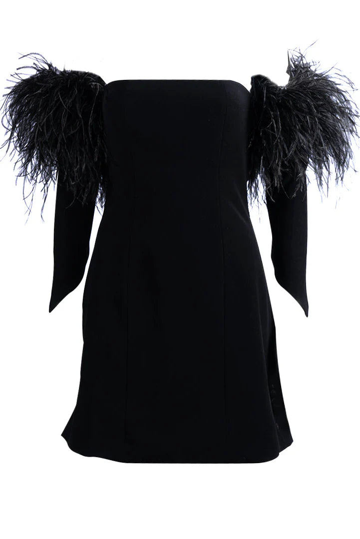 The Disco Min Dress boasts fur sleeves, a mini length, and a sleek boob tube design. Its back zip closure guarantees a seamless fit for a luxurious look.