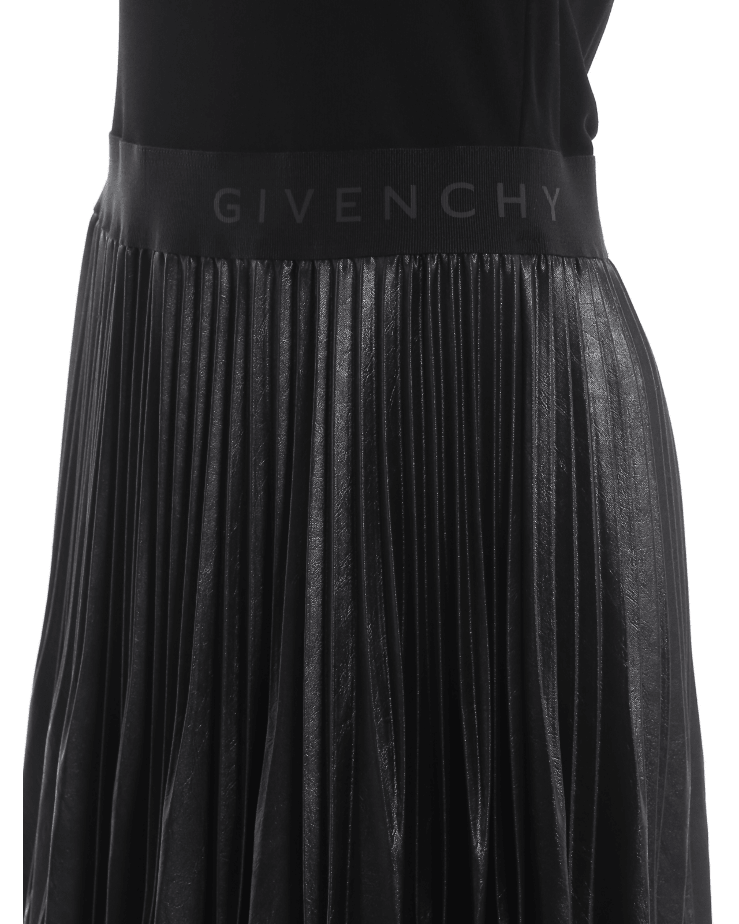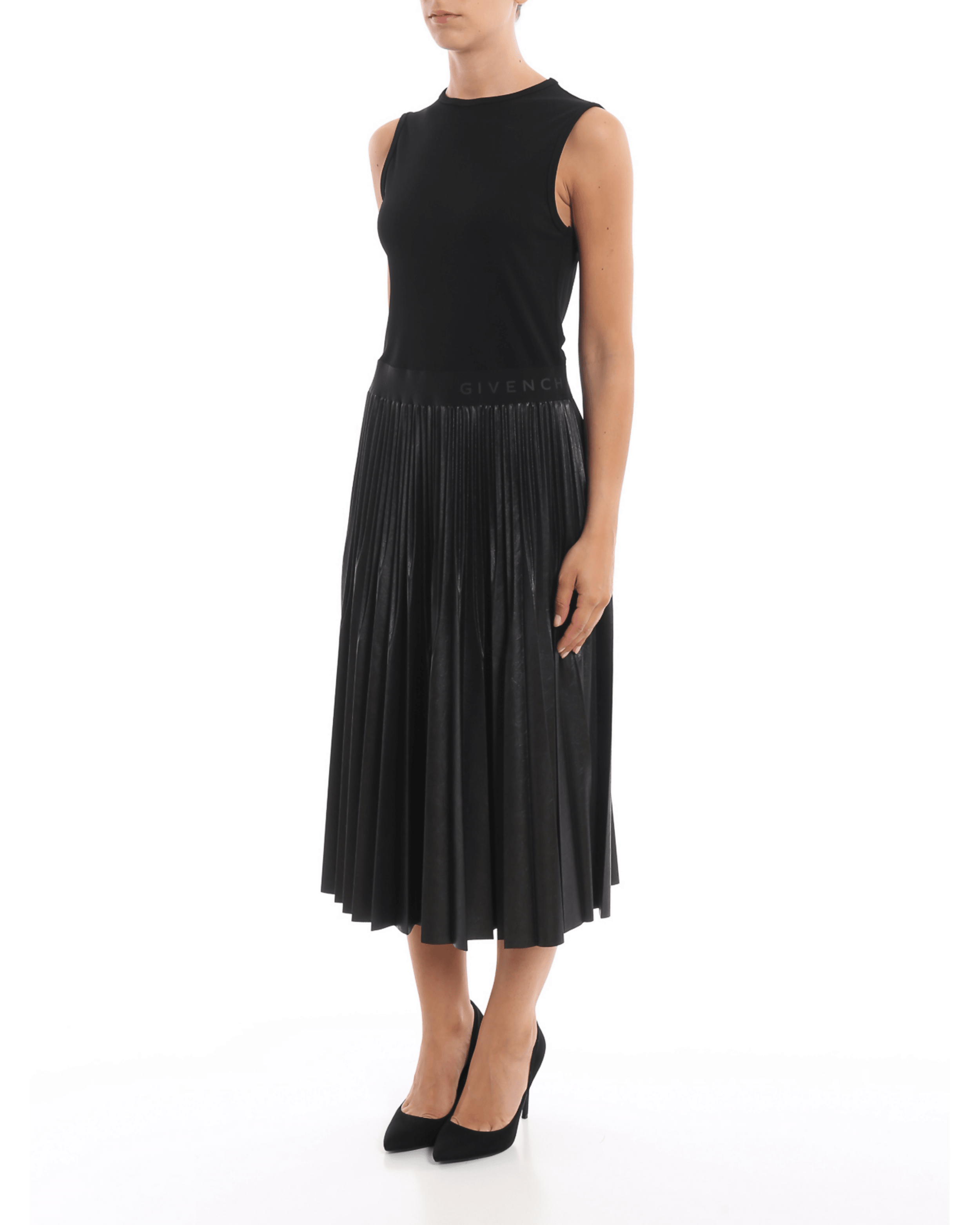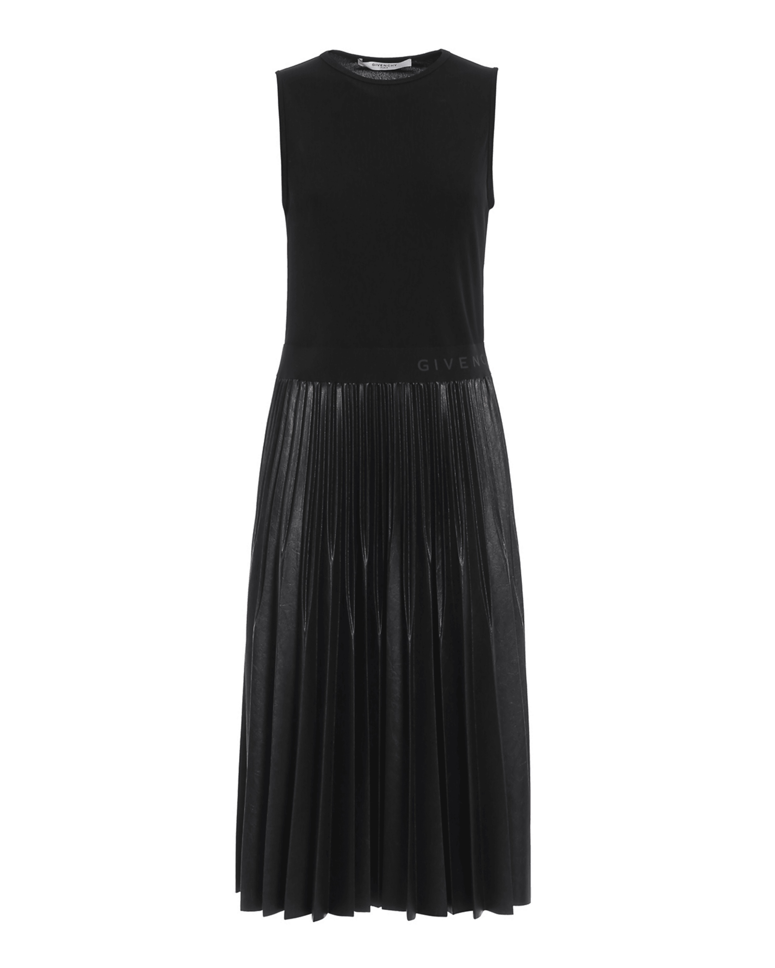 Sleeveless jersey dress detailed with logoed elasticated grosgrain waistband and coated pleated slightly flared skirt.