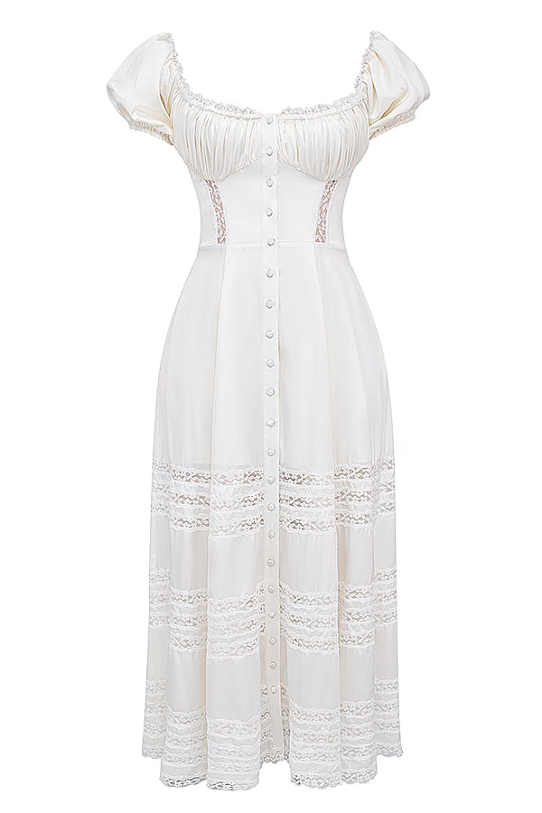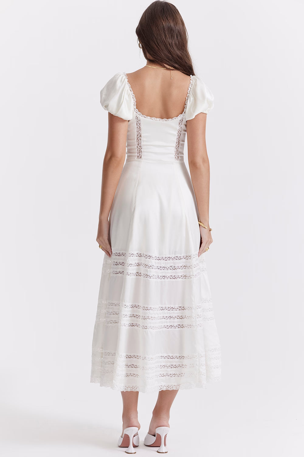 Eviana Ivory Real Silk Puff Sleeve Dress