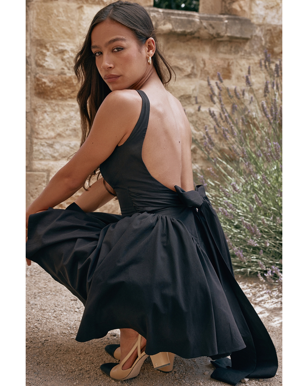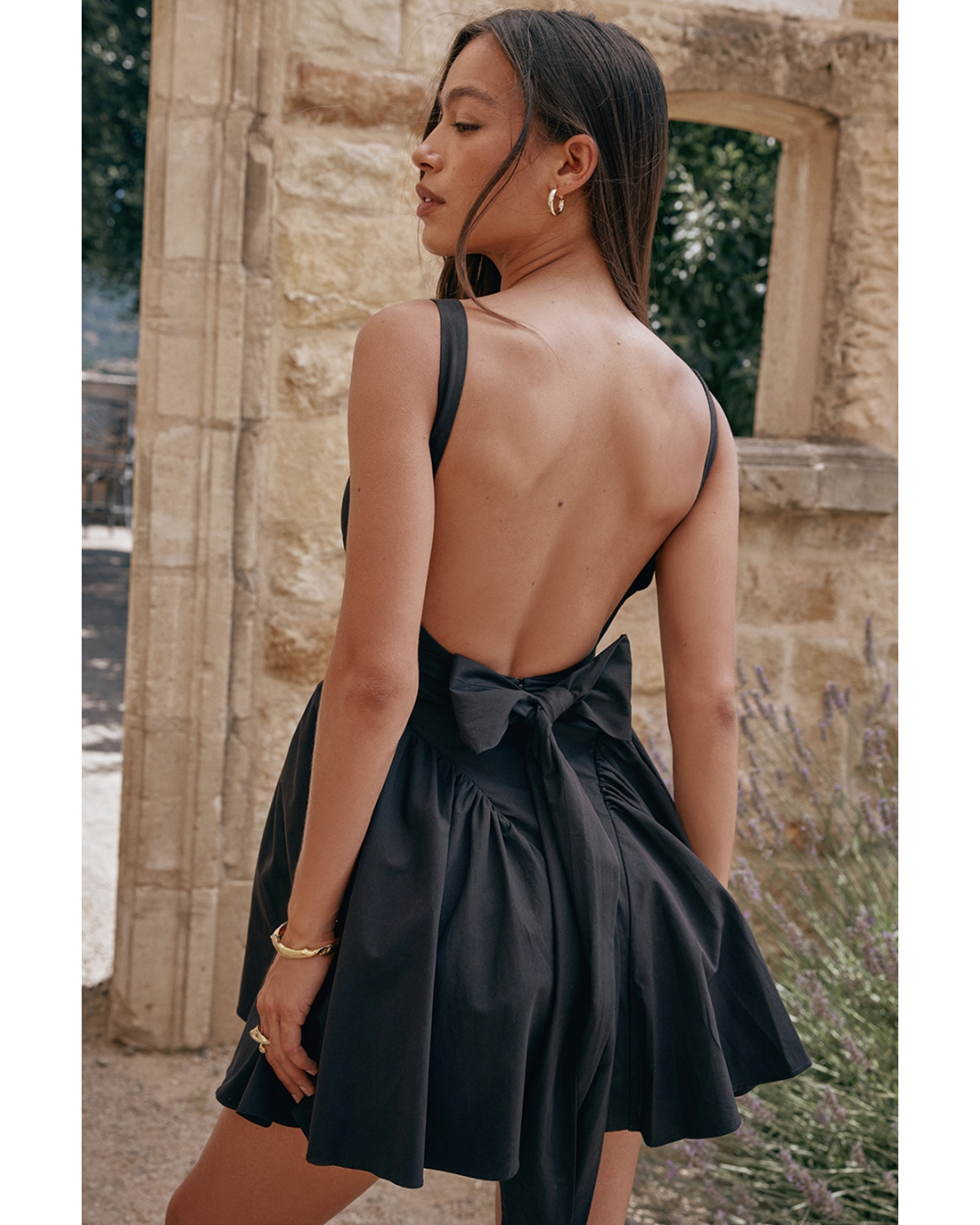The dress for warm Spring and Summer days, our 'Florianne' mini dress has the prettiest silhouette. Soft and feminine, it features a corseted bodice and Tuens to reveal an open back complete with an oversized bow for feminine drama. We love the figure defining seams and 'Florianne' has a pretty voluminous skirt that's fitted with a discreet tulle fabric to hold the shape perfectly.