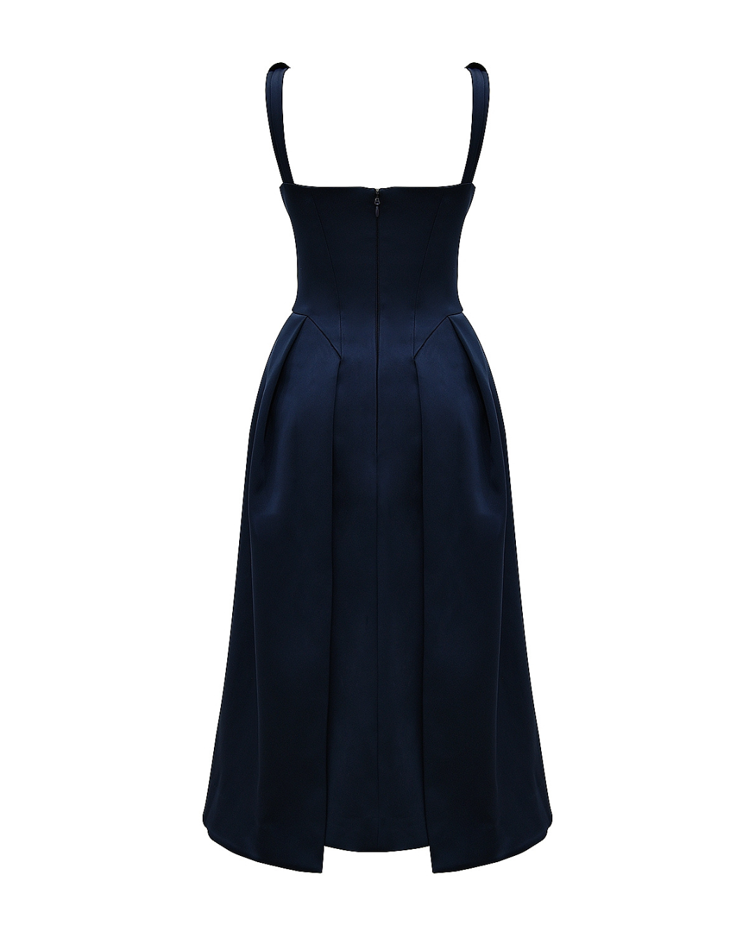 Paloma - Midnight Twist Strap Satin Midi Dress