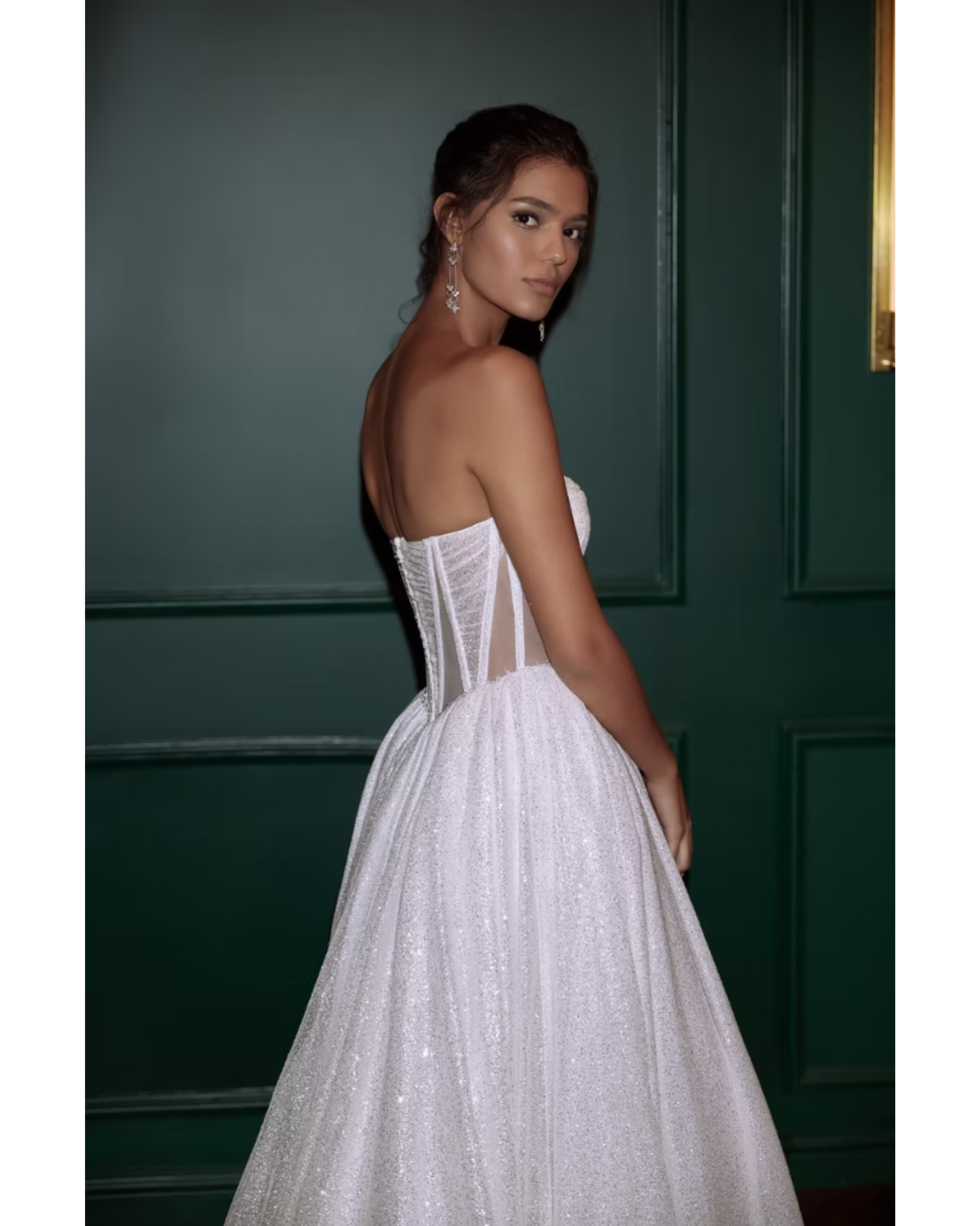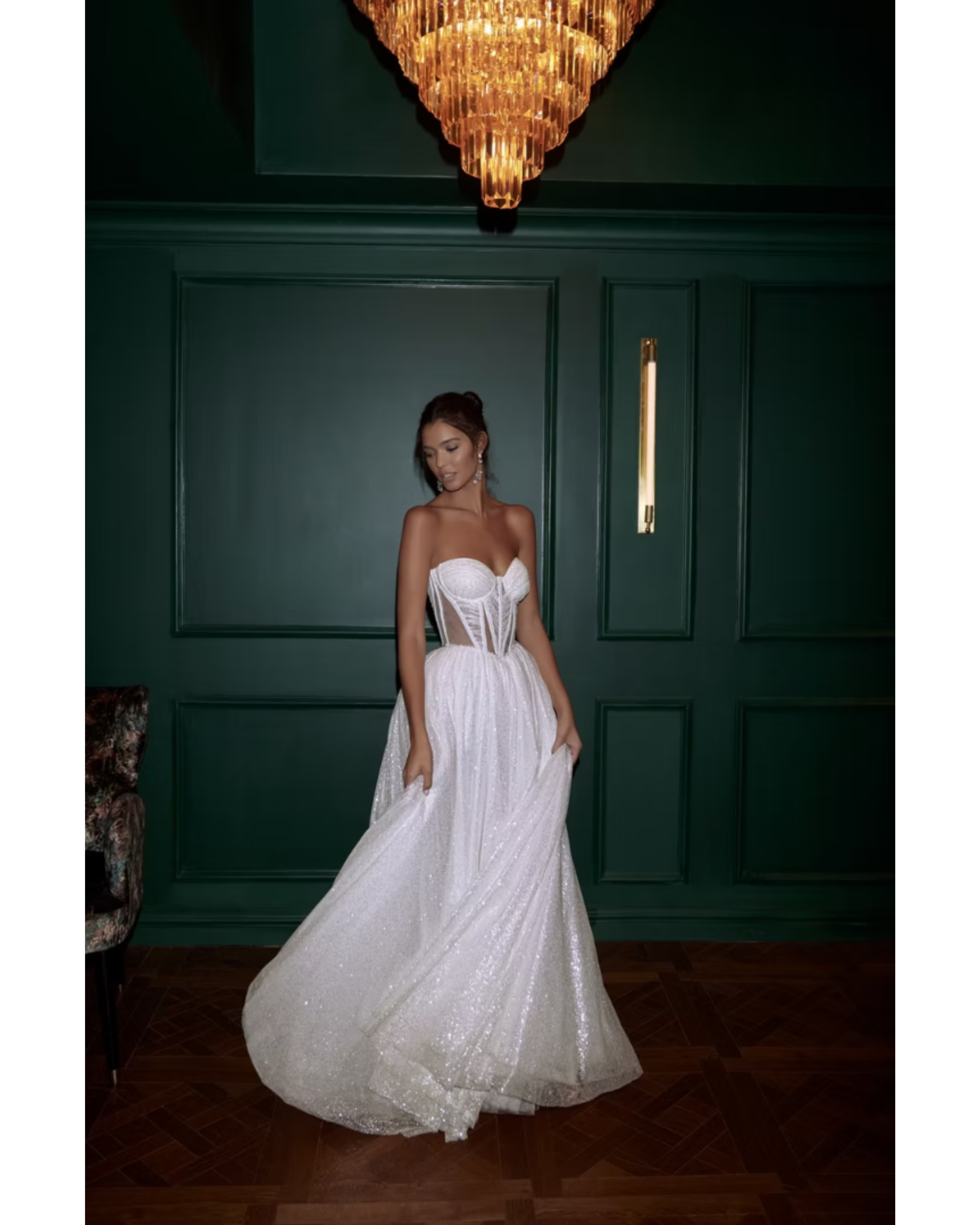 This item can be tried on by appointment only at the Ilume Bridal store in JLT. Please contact Ilume directly to arrange https://www.ilumebridal.ae/contact-us.