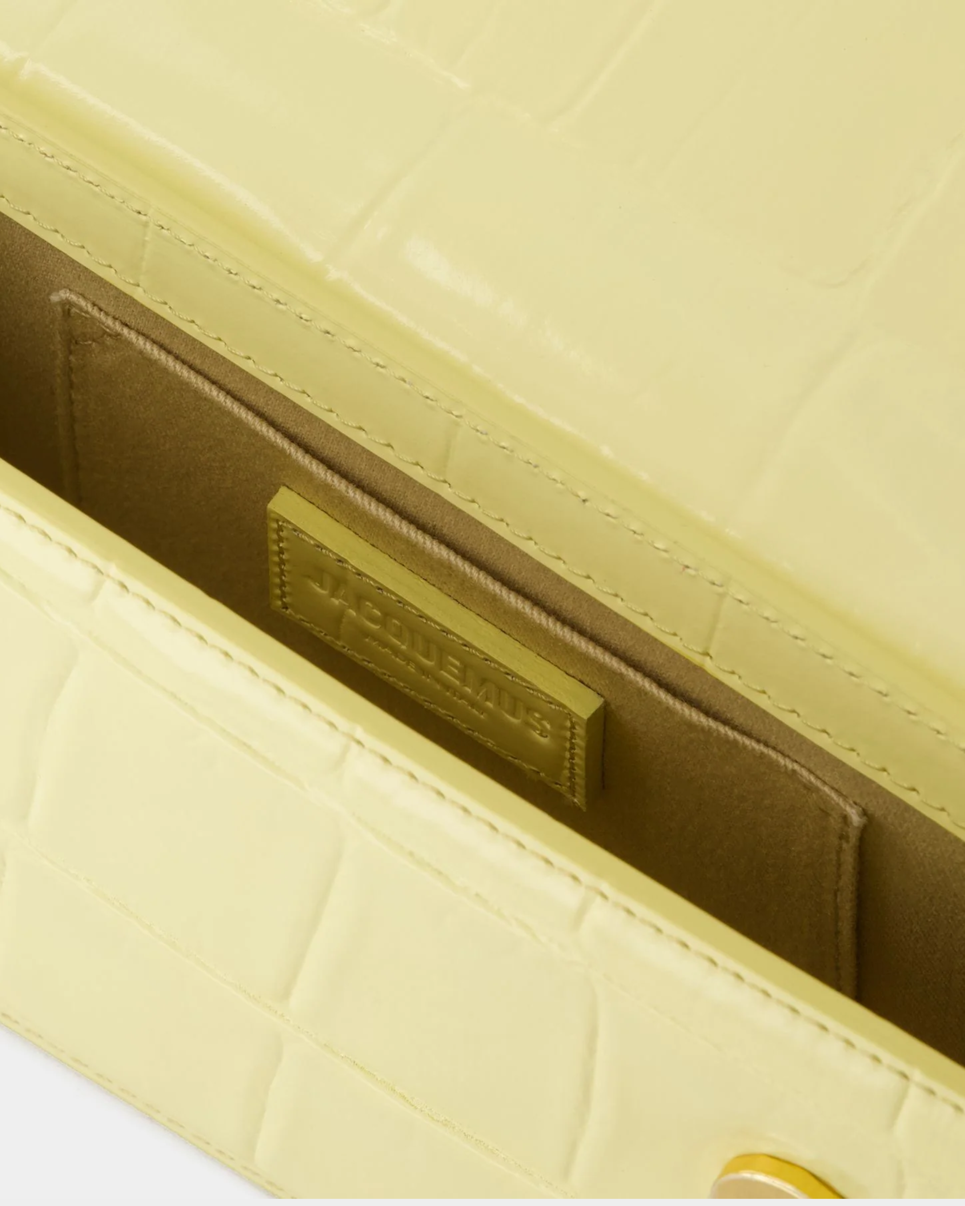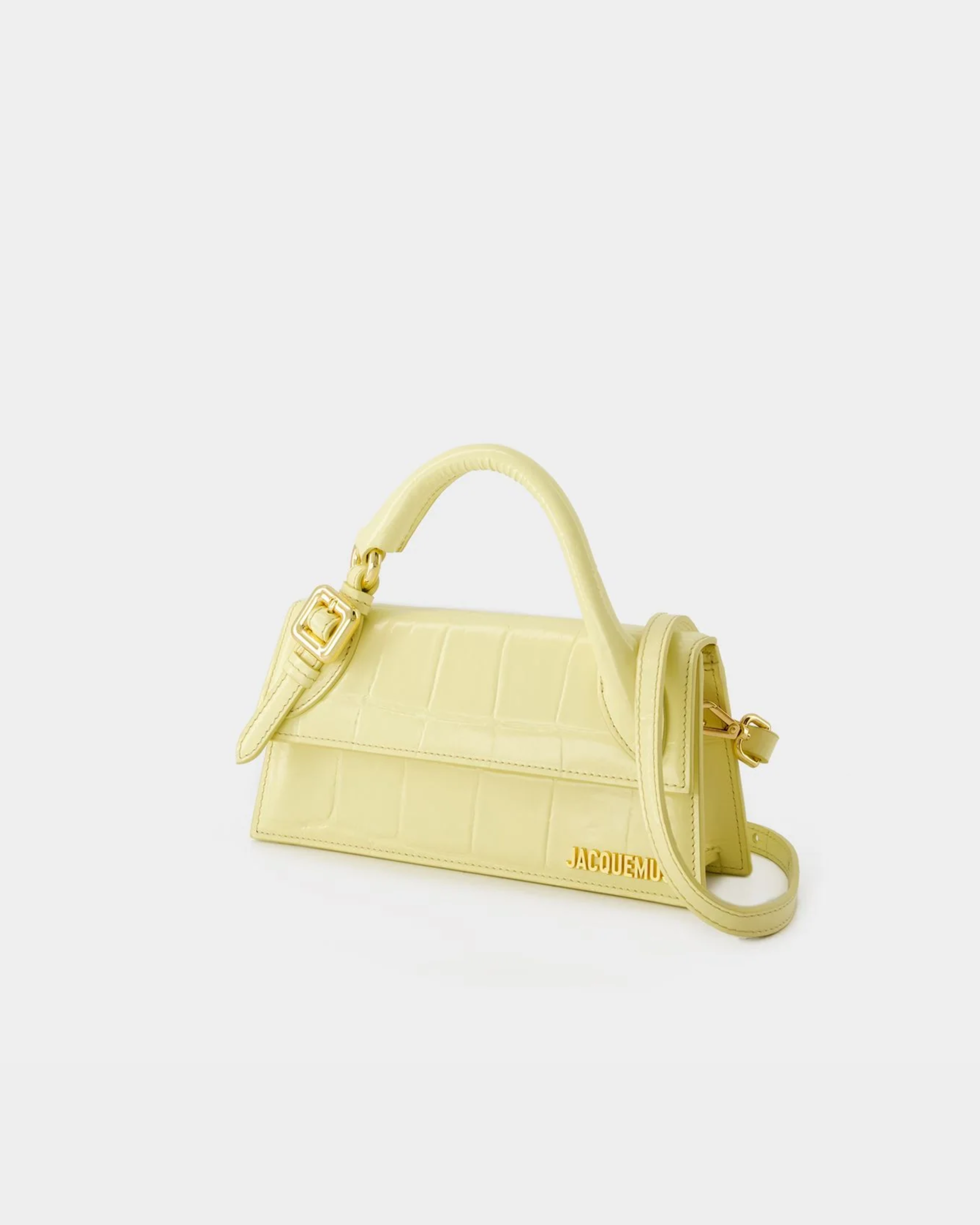 The Le Chiquito Long Boucle is a new riff on French maison Jacquemus's iconic structured bag. Immaculately chic and luxurious, it is crafted from crocodile-embossed leather and finished with a golden metal buckle and matching logo letter hardware.