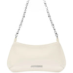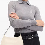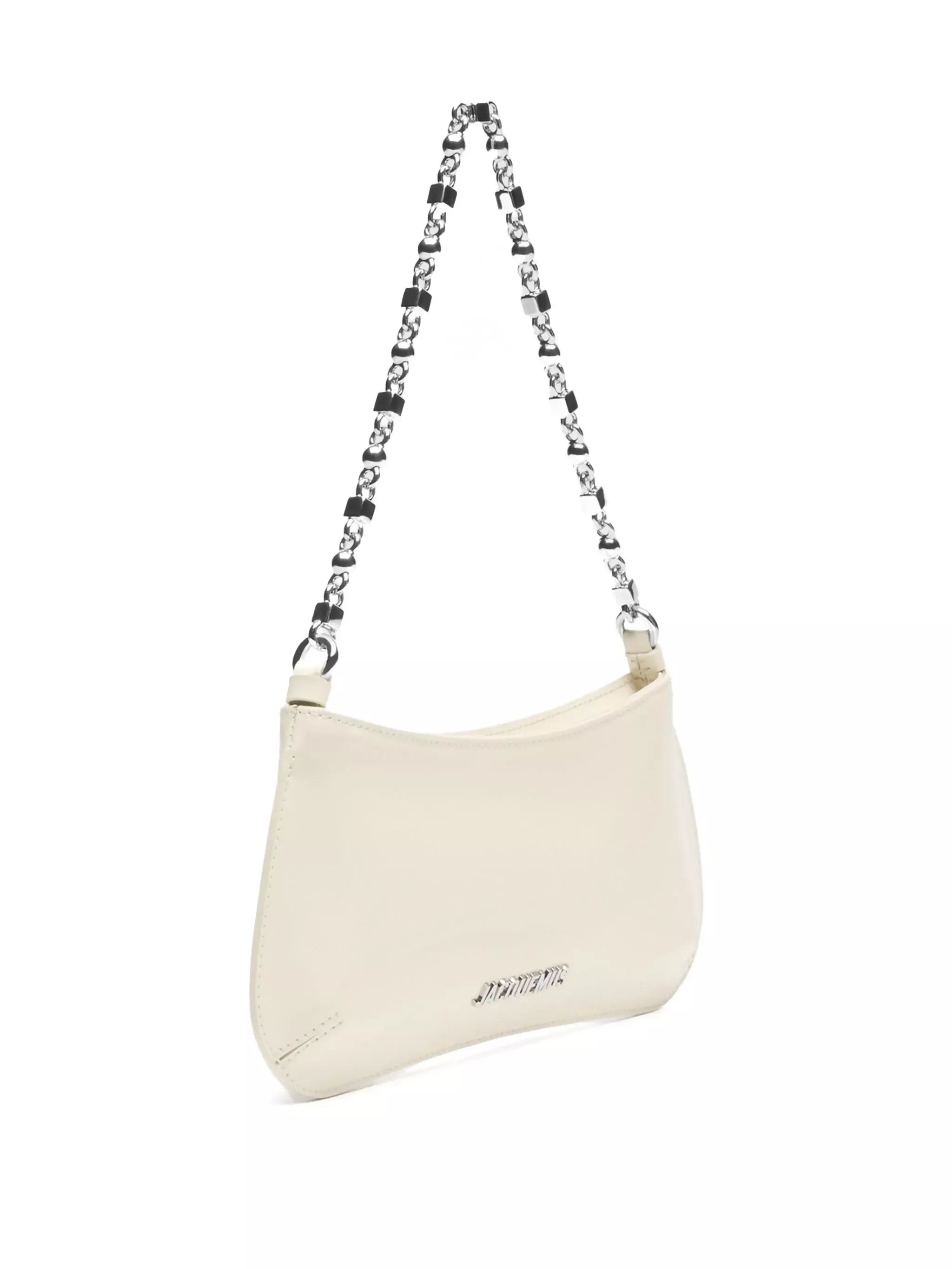 Crafted in light ivory calf leather, this piece features a secure top zip fastening and a refined chain-link shoulder strap. Finished with silver-tone logo lettering, it opens to a cotton-lined interior with a practical internal patch pocket.