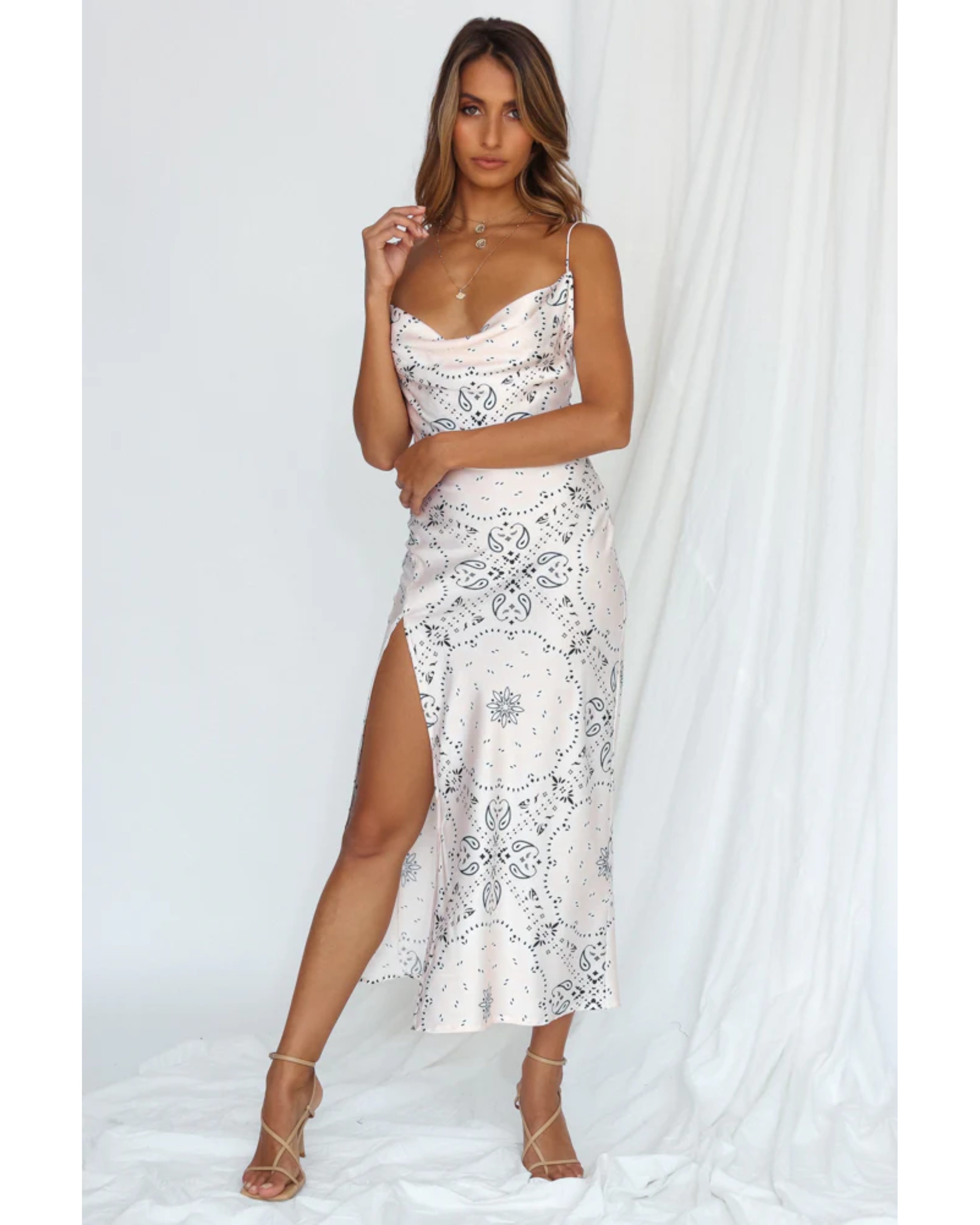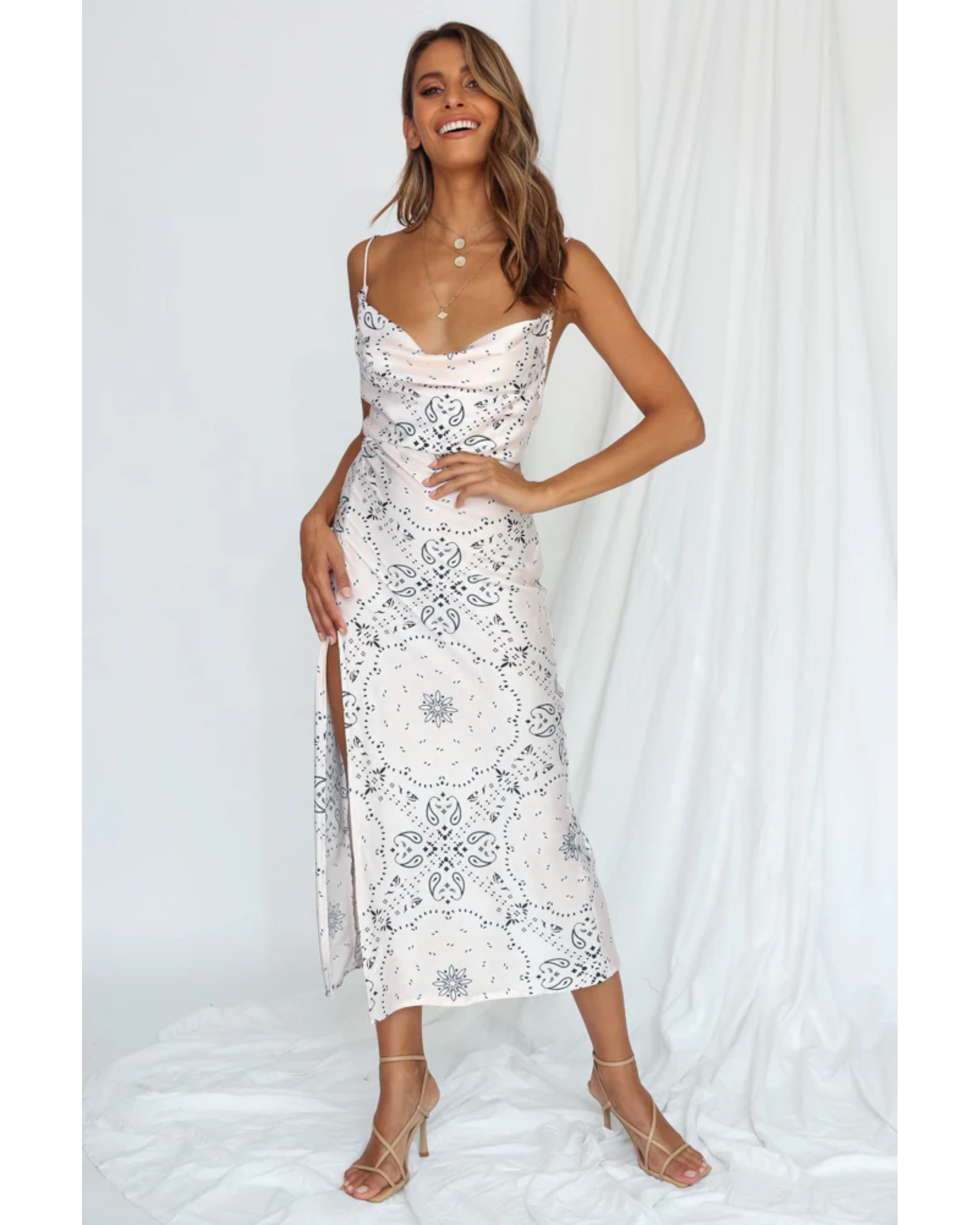 Walk The Line Midi Dress Cream Bandana