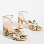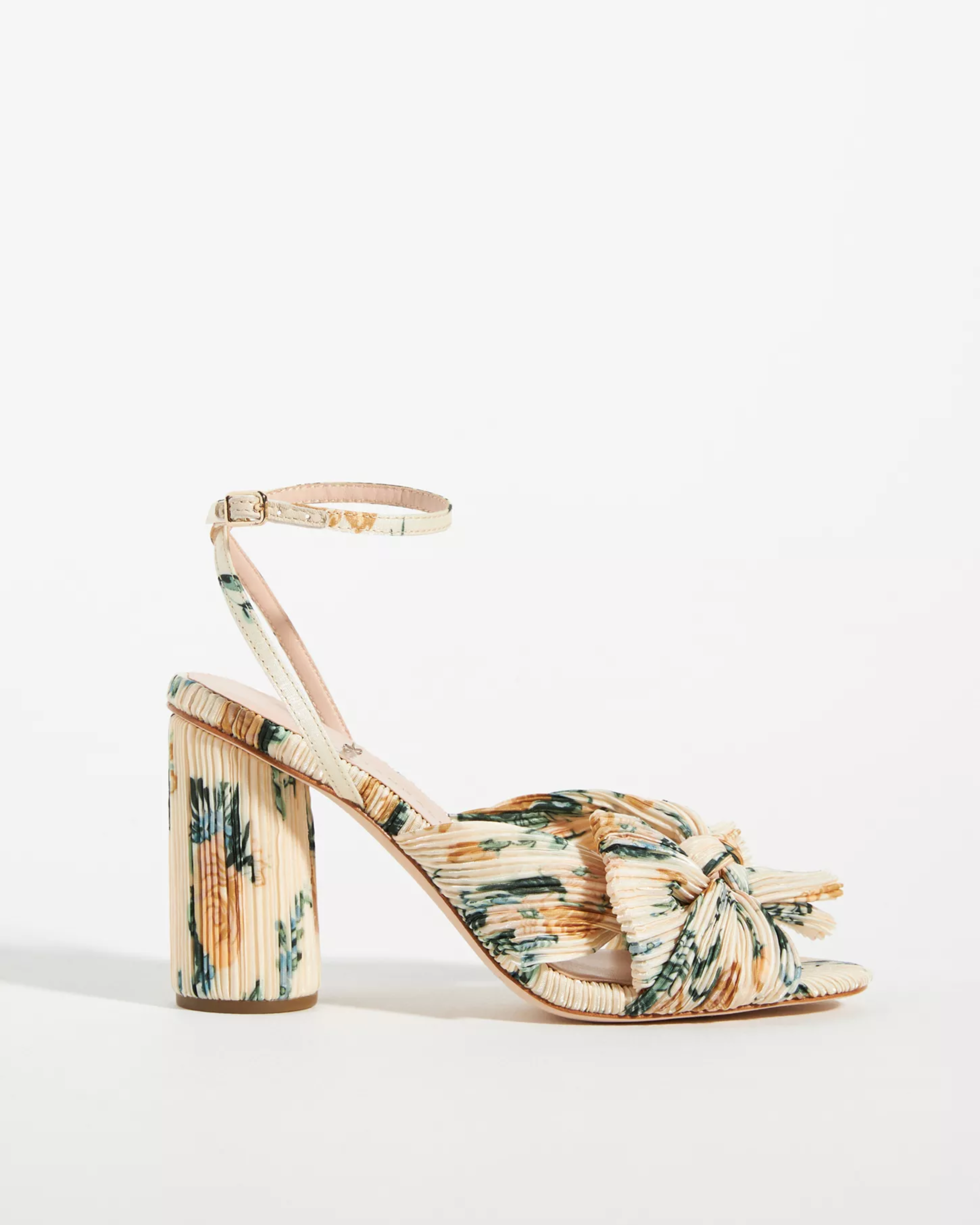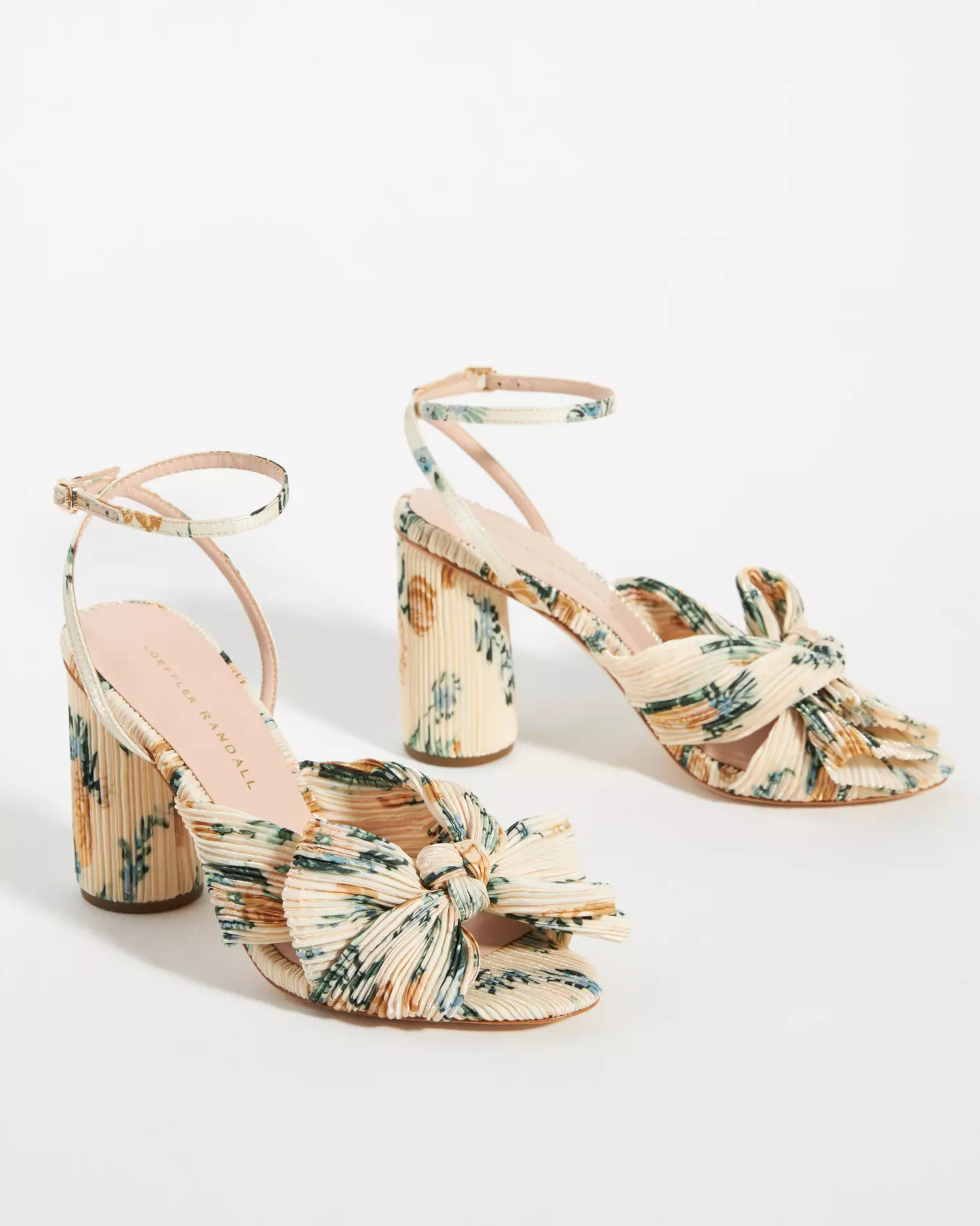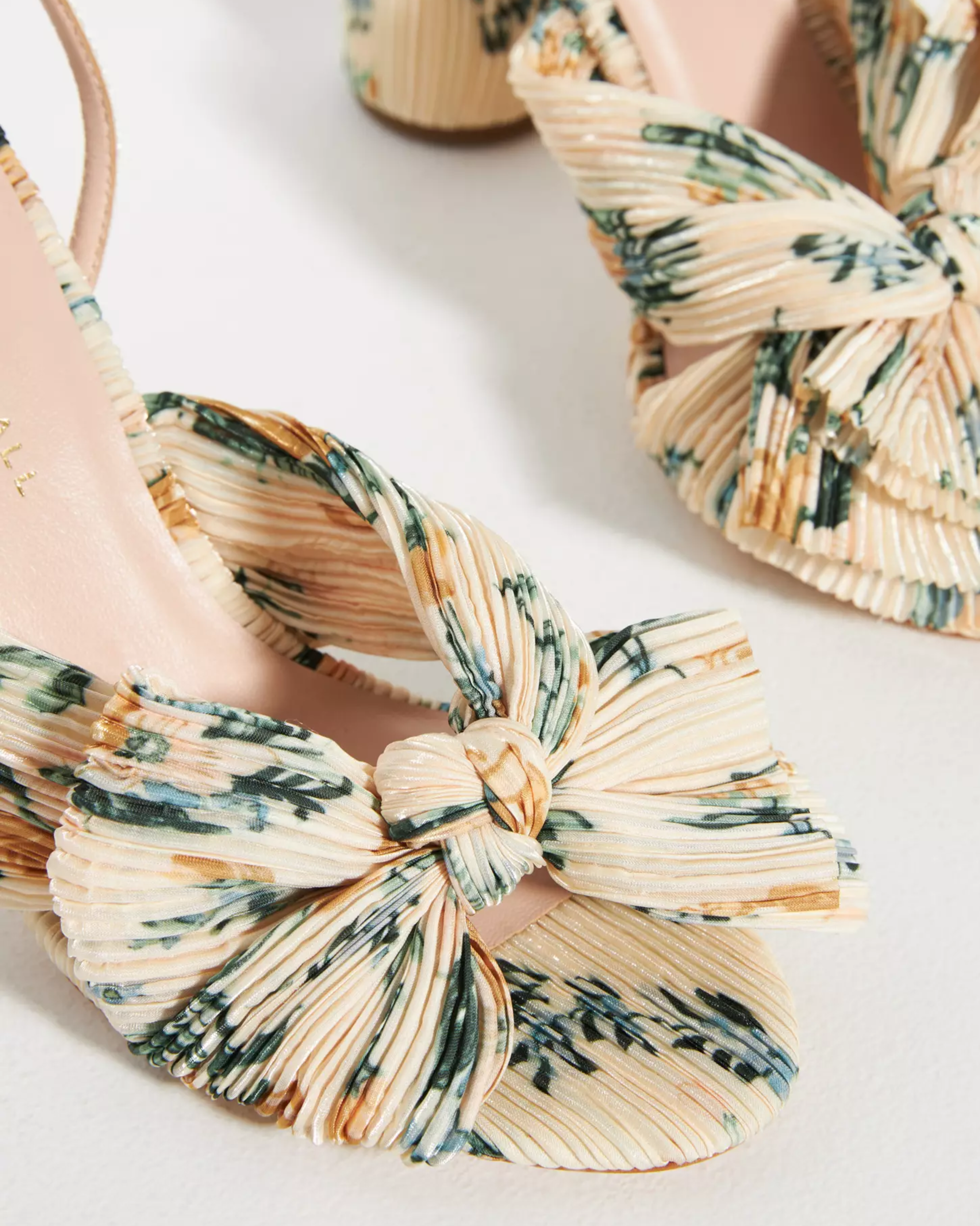 Loeffler Randall's Camellia sandals are crafted of floral pleated fabric topped with a signature knotted bow.