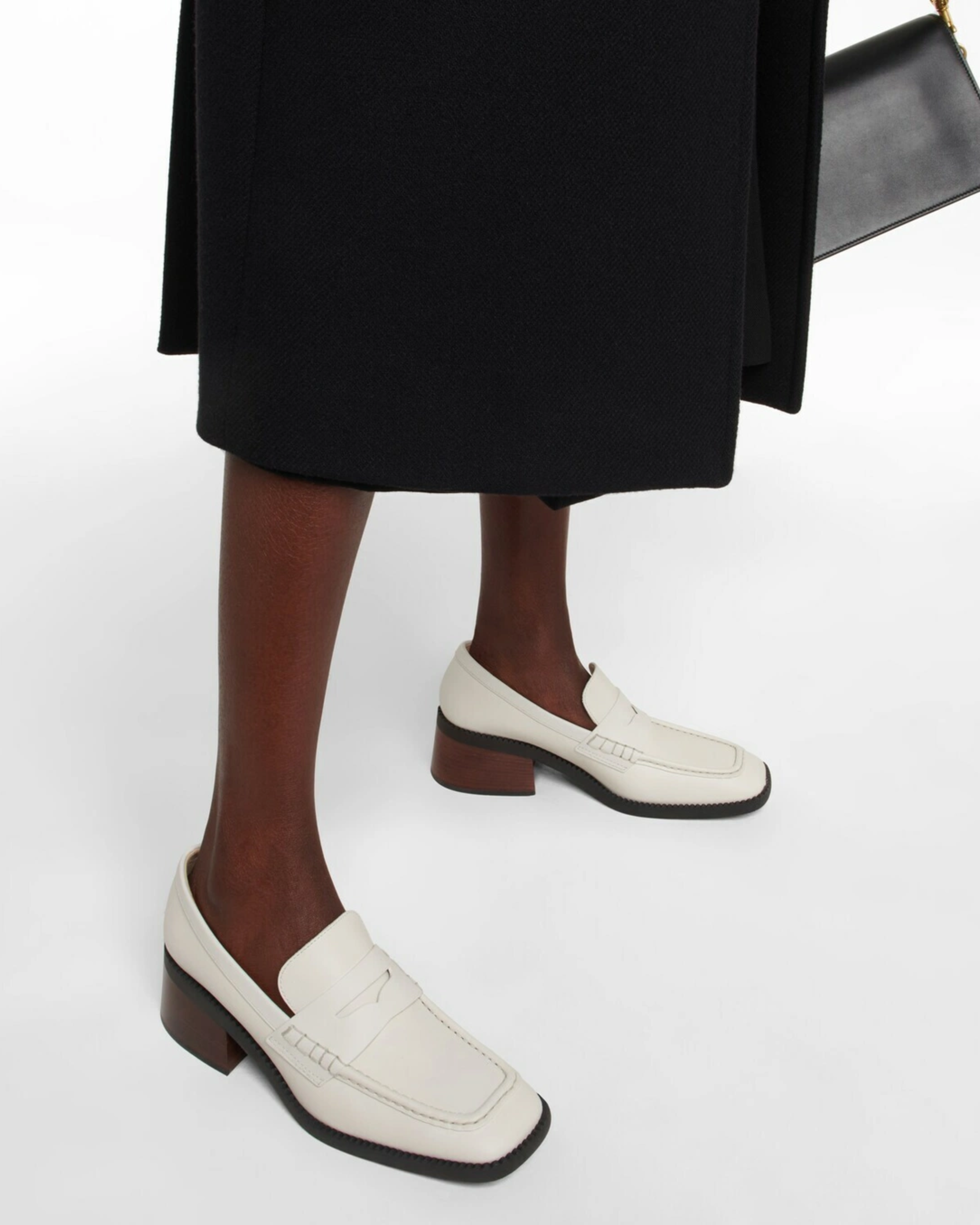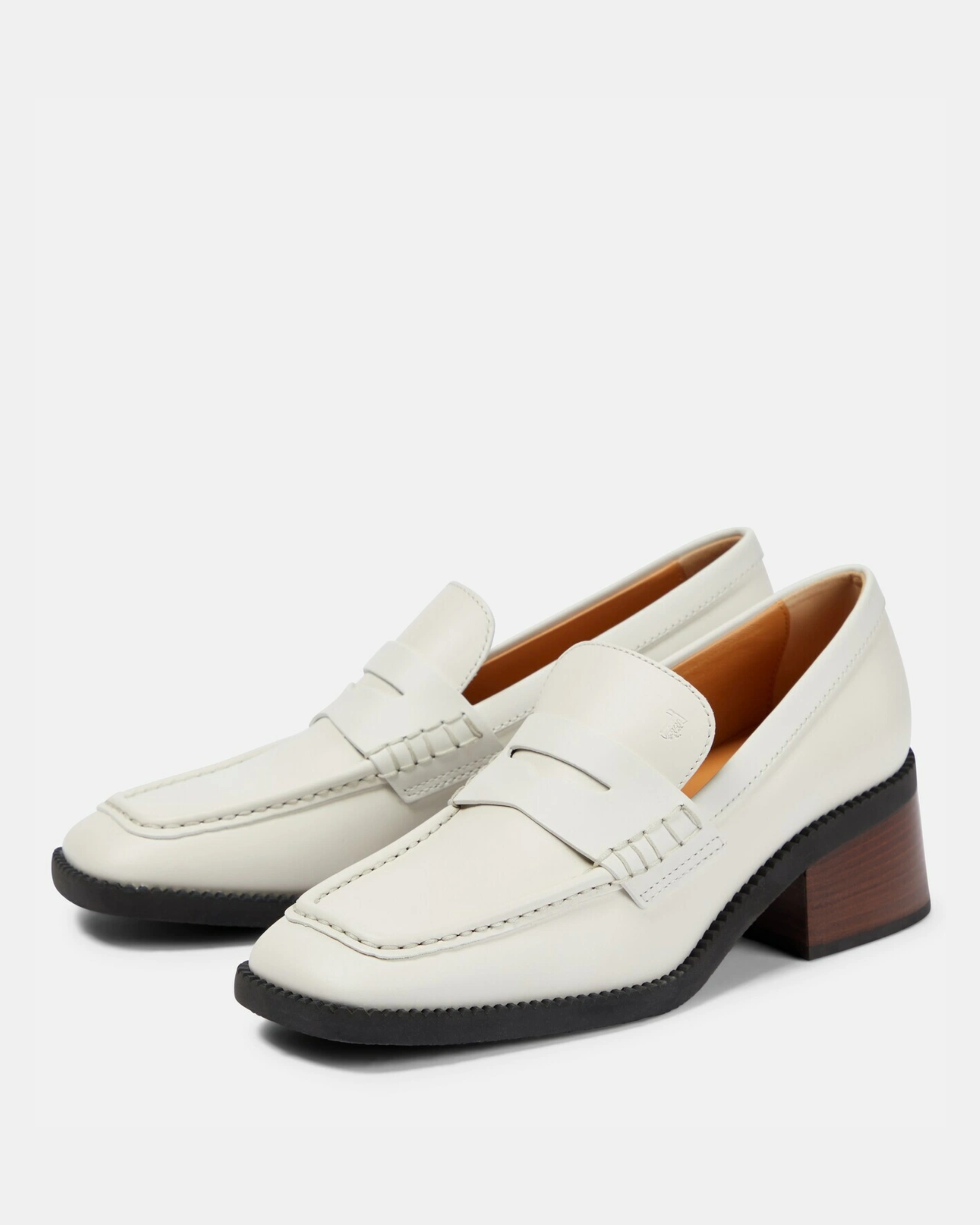 Trust Tod's for their exquisite takes on classic designs, such as these heeled penny loafers. The style is made from white leather and feature tonal stitched details and square toes.
