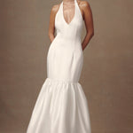 Introducing the DANICA Satin Halter Gown, a breathtaking blend of sophistication and allure. With its halter neckline, this gown exudes timeless elegance, framing your shoulders with grace. The fitted bodice accentuates your curves, while the mermaid skirt shape adds drama and allure to your silhouette. Crafted from luxurious satin fabric and lined for comfort, it ensures you feel as beautiful as you look on your special day. Complete with a convenient side zipper for easy dressing, the Danica gown is the epitome of bridal perfection, promising to make you feel like a radiant bride as you walk down the aisle.