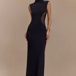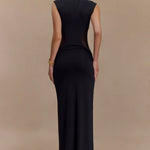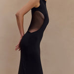 Embrace elegance with the MASSIE Slinky and Mesh Maxi Dress, a stunning blend of sophistication and modern design. Featuring a graceful grown-on neckline and wide shoulder shape, this bodycon dress hugs your curves and flows into a refined maxi length. Contrast hash panels at the waist cinch your figure for an hourglass silhouette, adding visual intrigue. Fully lined for comfort, the Massie dress is perfect for formal events, nights out, or special celebrations. Elevate your wardrobe with this versatile piece, where contemporary style meets timeless appeal.