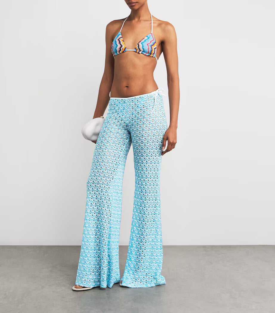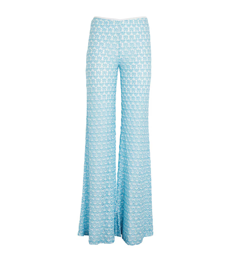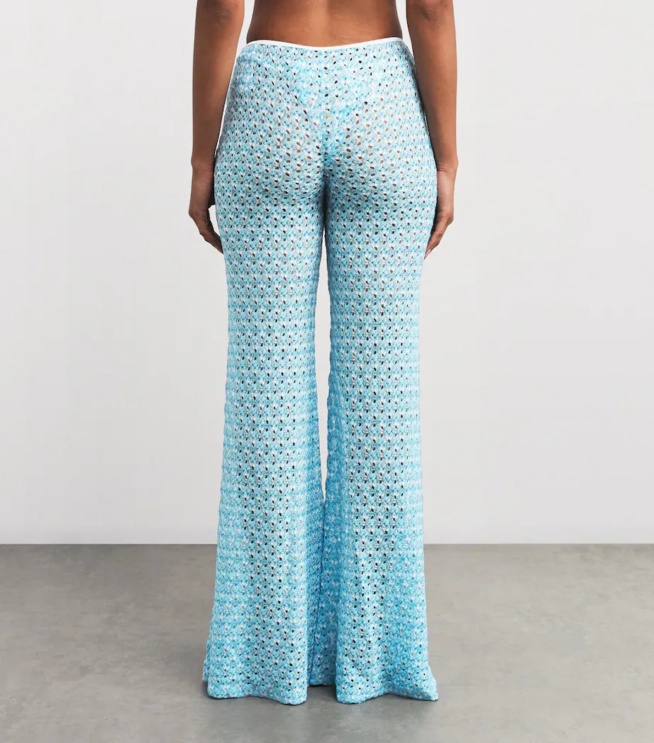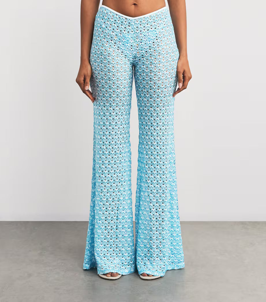 These trousers from the Spring/Summer 2025 collection are crocheted to an open construction to enhance the flowy movement of the flared shape.