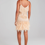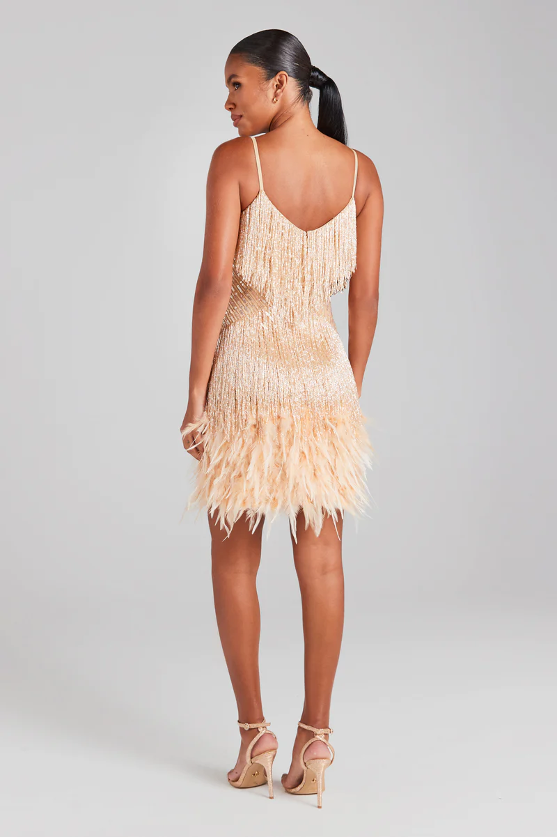 Lottie Champagne Gold Beaded Feather Fringe Mini Dress