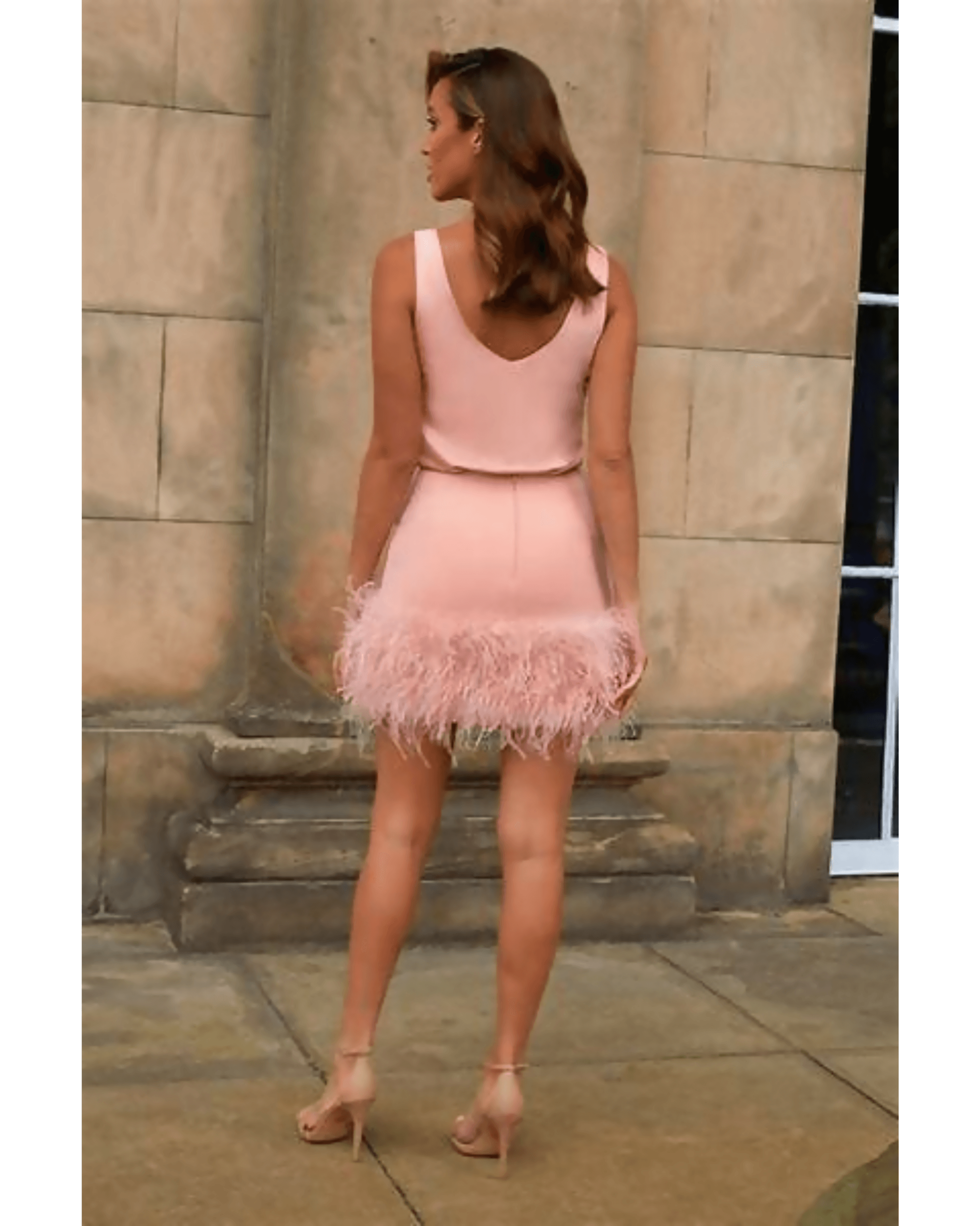 MIA Blush has arrived and what a beauty she is. Flirty and fun this little mini skirt will have you dancing the night away. Fitted to the waist and a feather detailing hemline you will stand out in our MIA.
