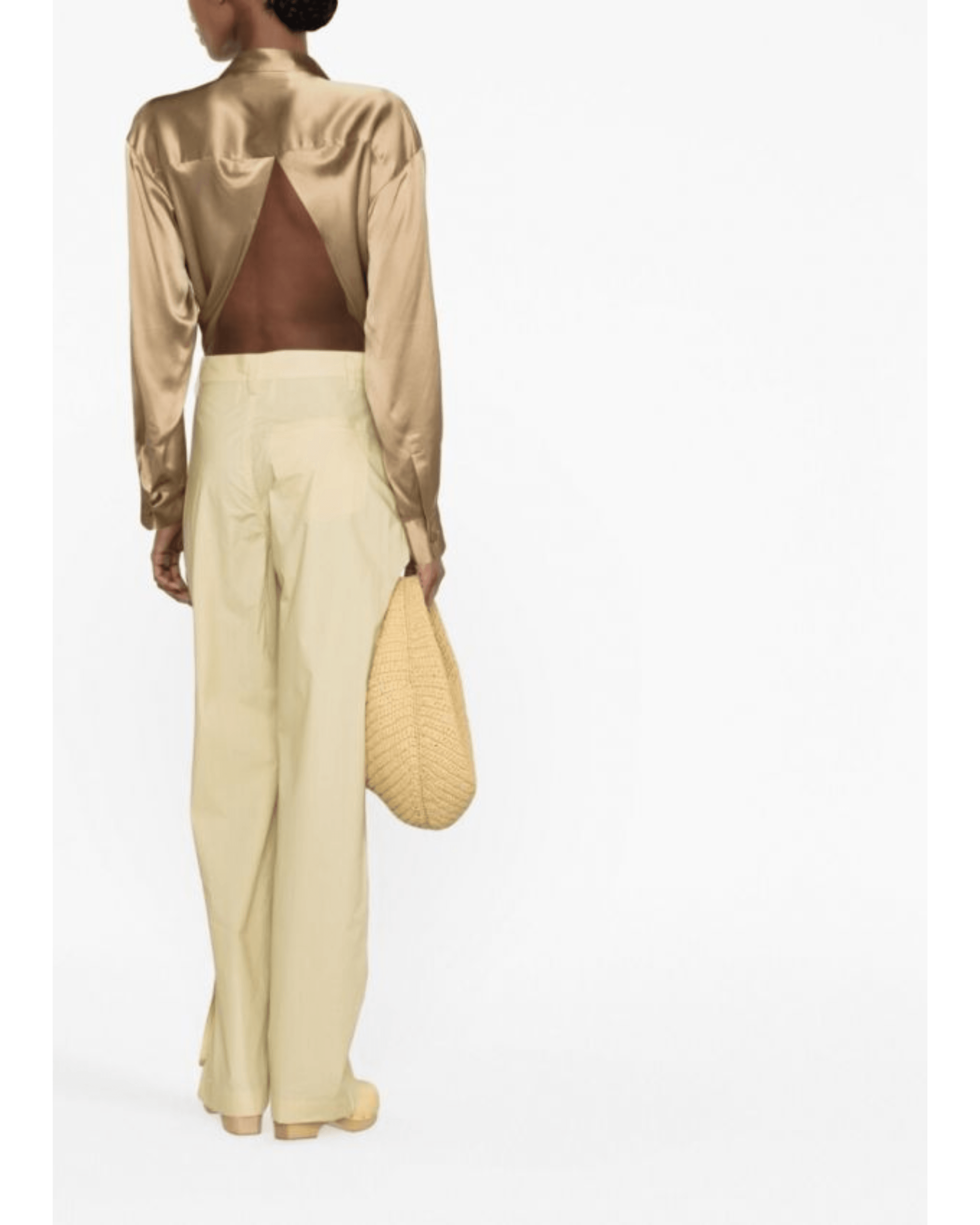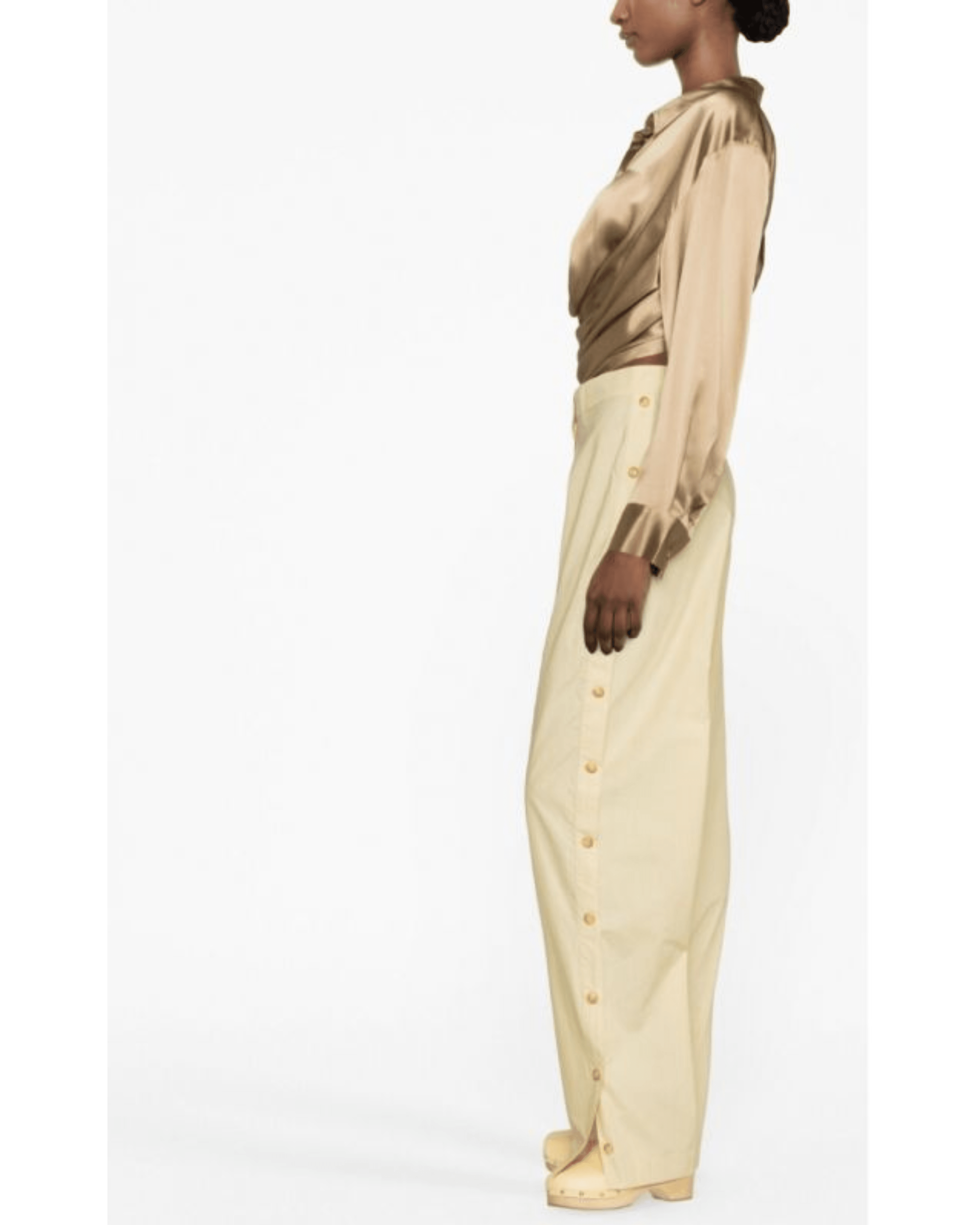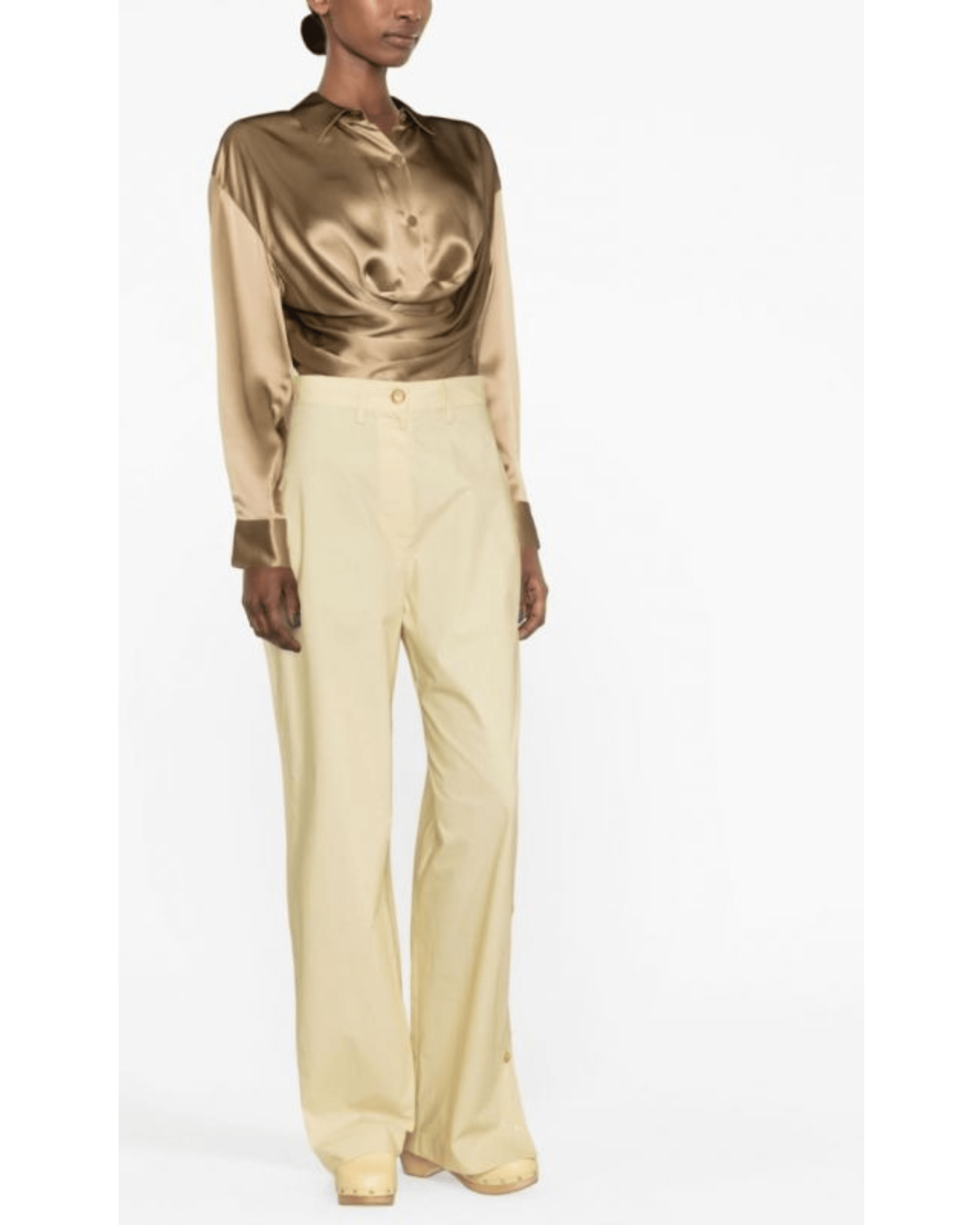 Nessa straight-leg trousers from NANUSHKA featuring light beige, cotton, high waist, concealed fly and button fastening, belt loops, slip pockets to the sides, rear patch pocket, side button fastening and straight leg.