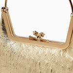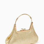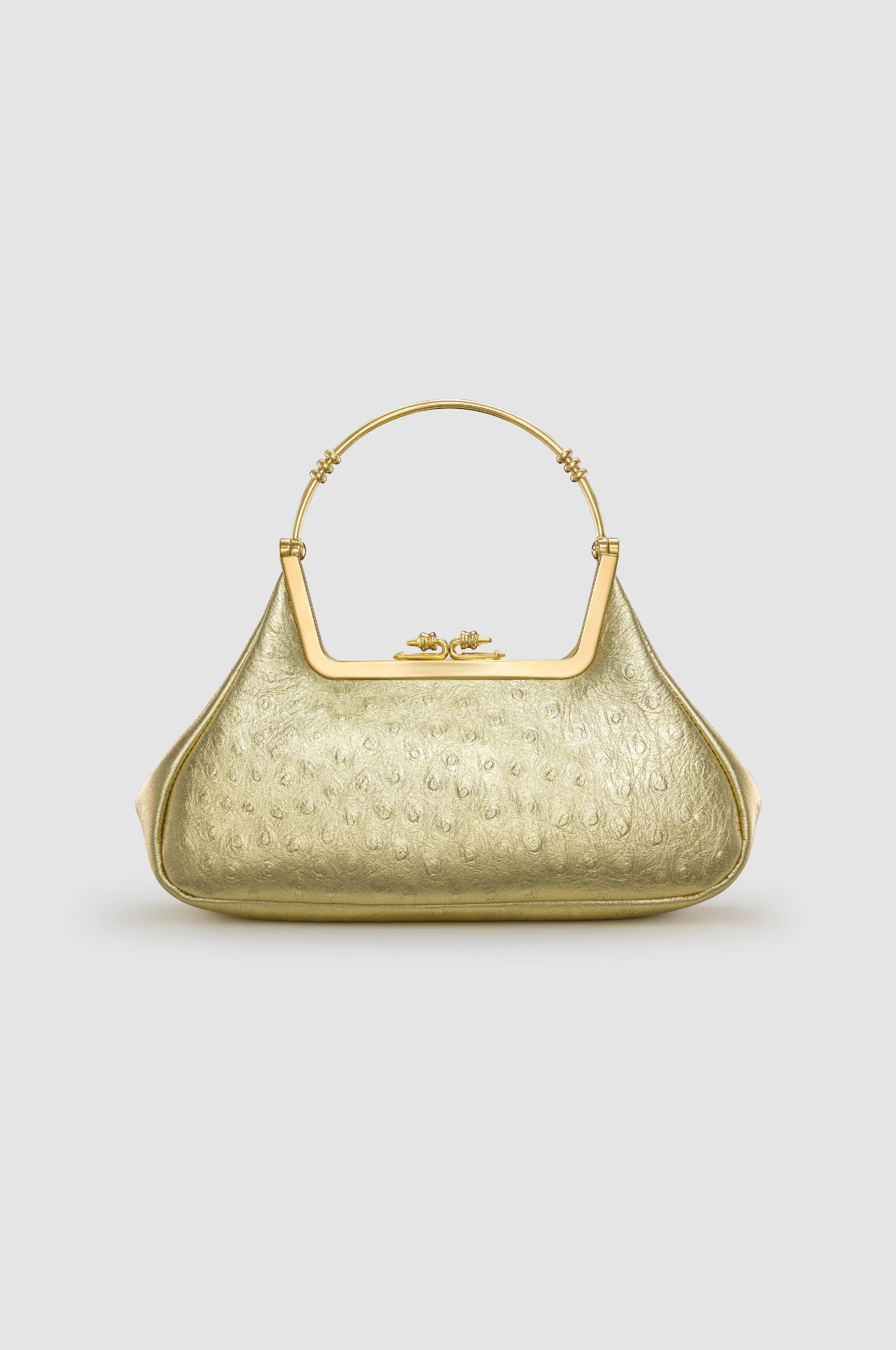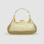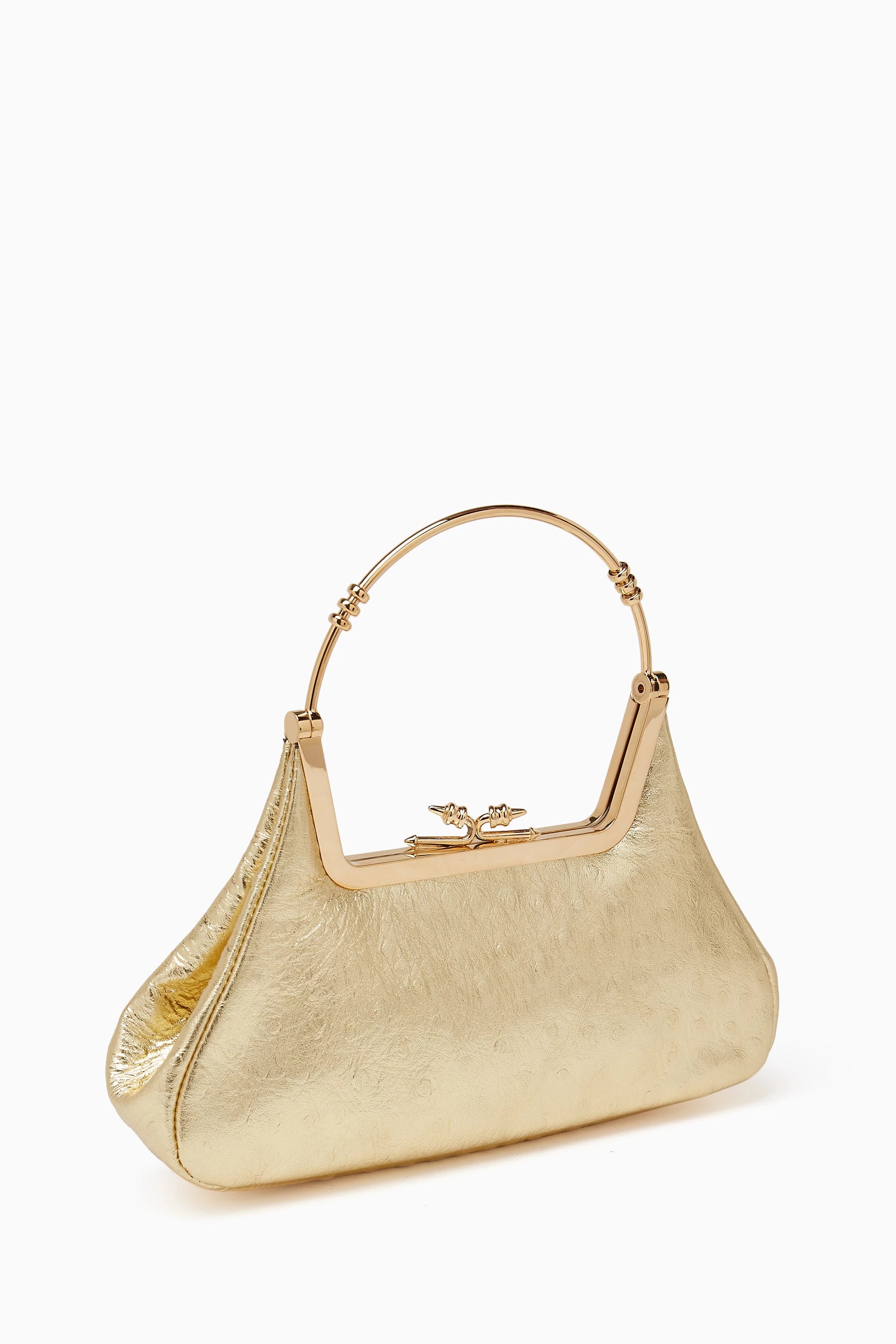 Okhtein's Zayan clutch has a softly structured silhouette topped with a jewellery-like metal handle, inspired by the ornate designs of the 1950s. Designed to instantly elevate any look, this luxe accessory features a smooth leather exterior complemented by gold-plated hardware. Carry it in hand or elegantly placed over the arm to add a refined finish to glittering evening edits.