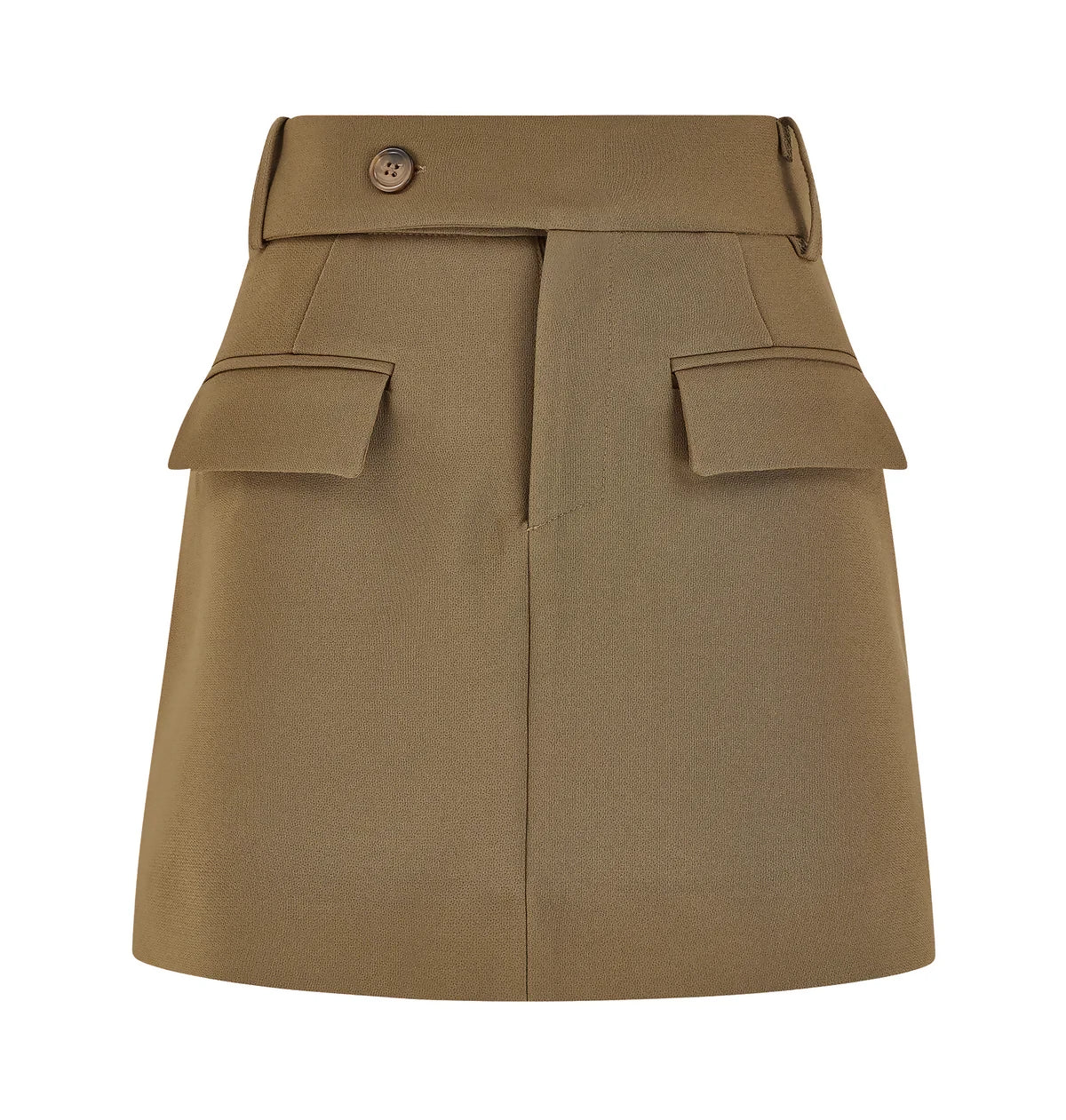 Mini skirts, but make it Odd Muse. Defined by its finishing touches of a button detail to get our statement cinch and our sophisticated flap pockets. Part of a chic three-piece, consider this olive iteration your ultimate muse uniform for fall.