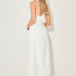 The Ultimate Muse V-neck Structured Skirt Midi Dress features a classic polka dot print and a beautifully structured skirt that holds its shape while offering effortless movement. Flattering and refined, its tailored fit makes it a piece you'll reach for throughout summer. Designed for versatility, it's as effortless with flats by day as it is elevated with heels by night.