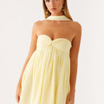 The Saturn Mini Dress brings floaty elegance with a strapless sweetheart neckline and chiffon flare silhouette. Finished with a neck scarf, silicone taping, and a secure invisible zipper, it's fully lined for easy wear.