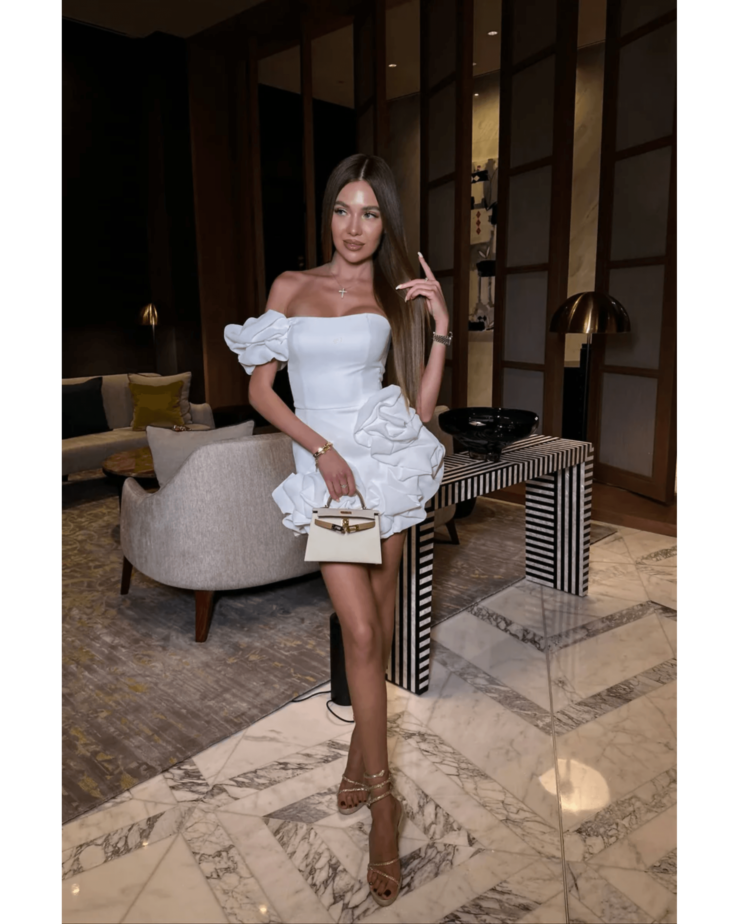 Be the life of the party in Janice Mini Dress. The 3D ruffles add a touch of elegance to this bodycon dress, perfect for any occasion. Whether you're on vacation or attending an evening event, this tube dress will make you stand out and feel confident. A must-have for every fashion-forward woman.