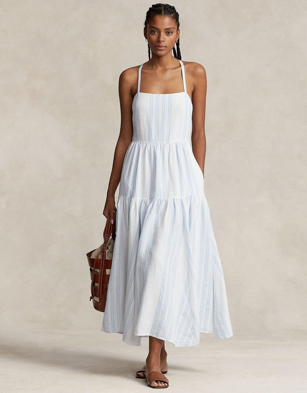 Striped Shirred Linen Dress is a classic and versatile piece for casual wear.