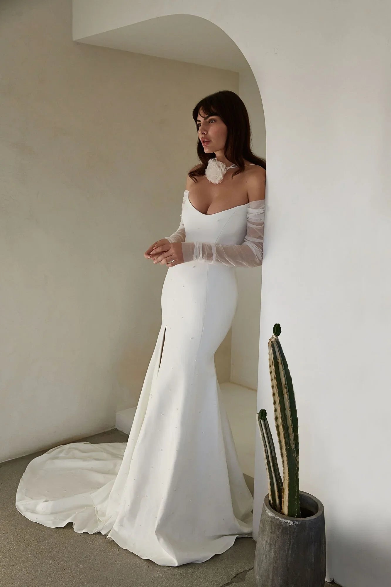 This item can be tried on by appointment only at the Ilume Bridal store in JLT. Please contact Ilume directly to arrange https://www.ilumebridal.ae/contact-us.