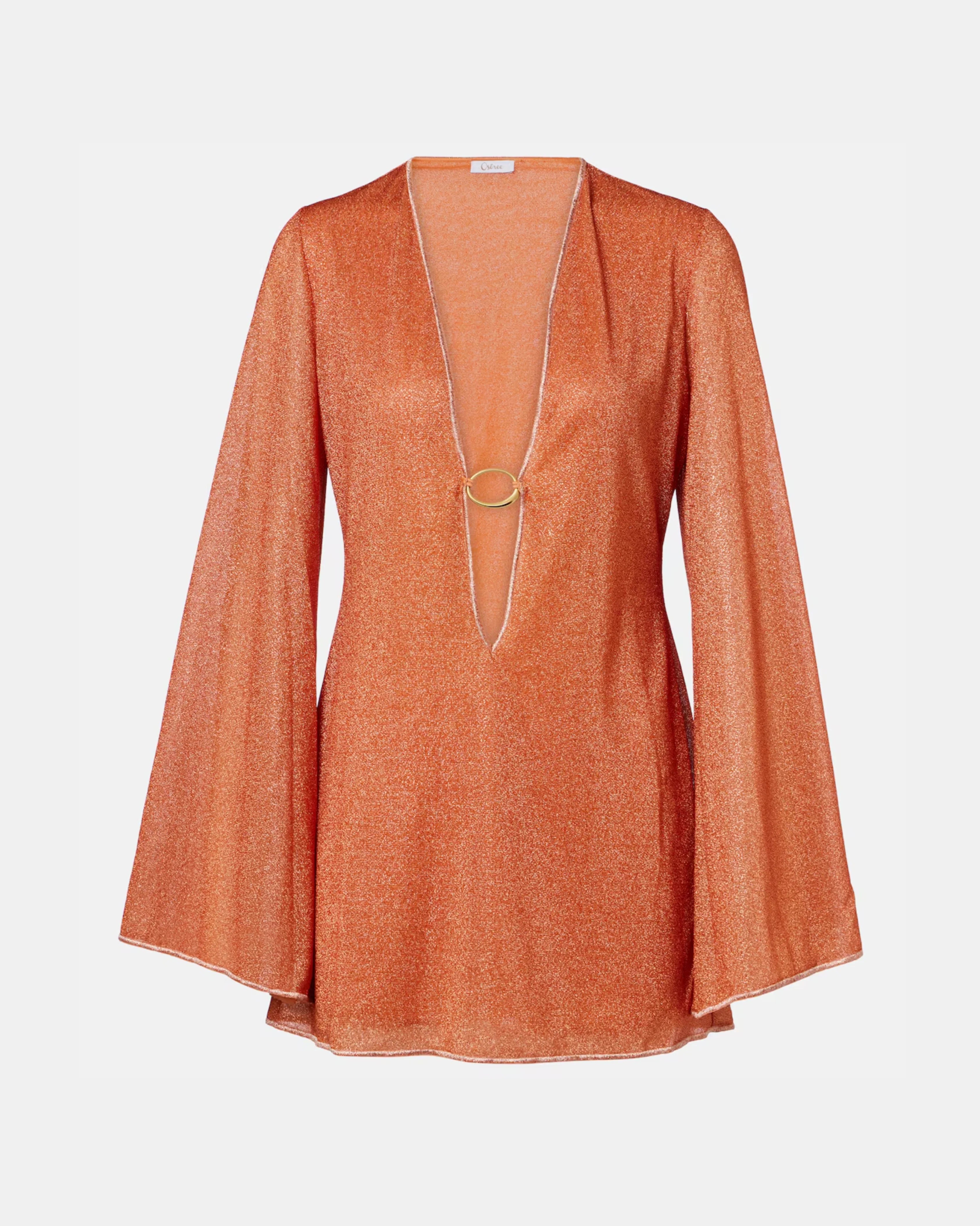 When the occasion calls for unforgettable stop-and-stare silhouettes, Oseree is the answer. This beach dress was made in Italy from a glazed iteration of the brand's iconic Lumiere fabric.