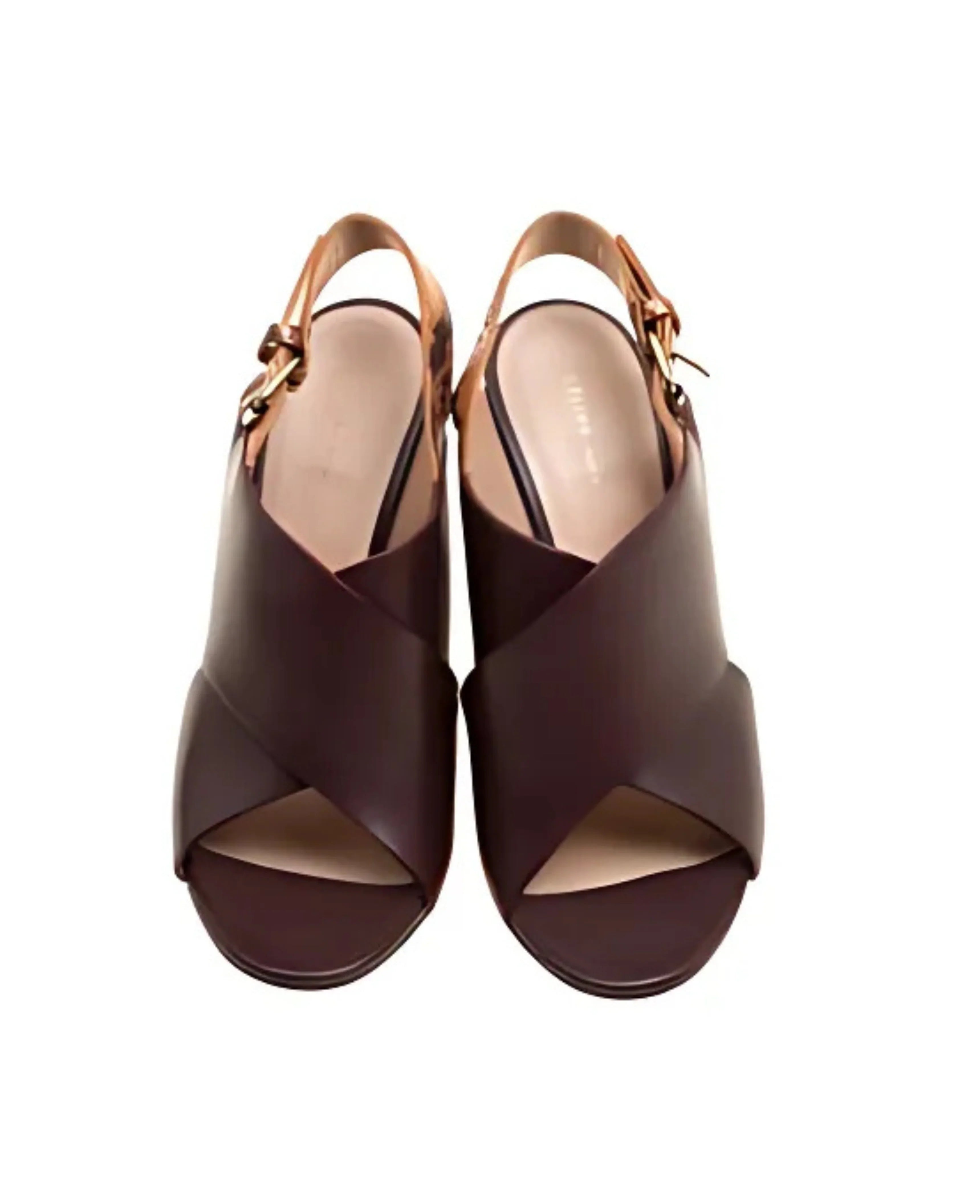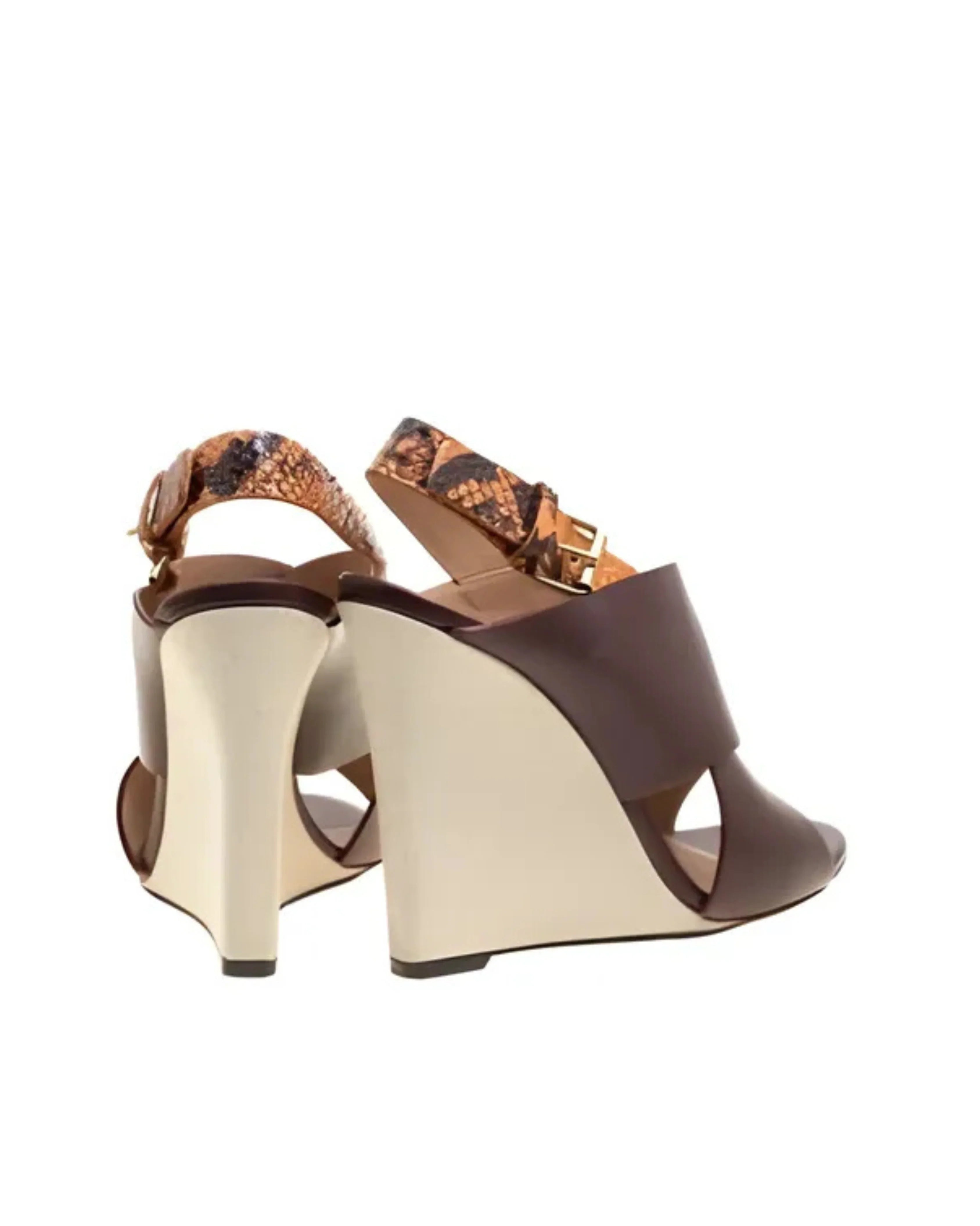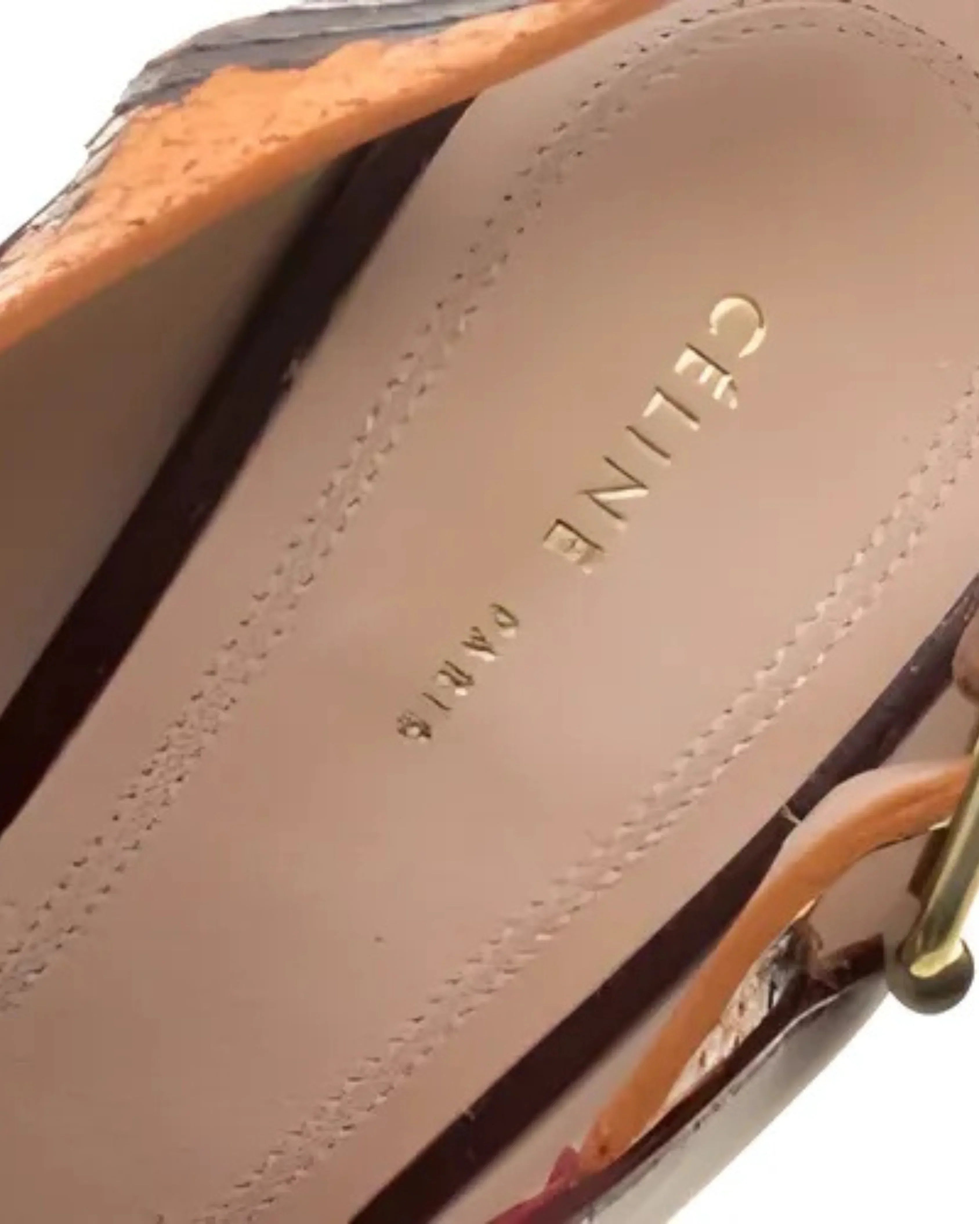 Fashion and comfort will always go hand in hand when you step out wearing these smart sandals from Celine. These burgundy sandals are crafted from leather and feature an open toe silhouette. They flaunt crisscross styled vamps with gold buckled python slingbacks, comfortable leather lined insoles and wedge heel.