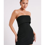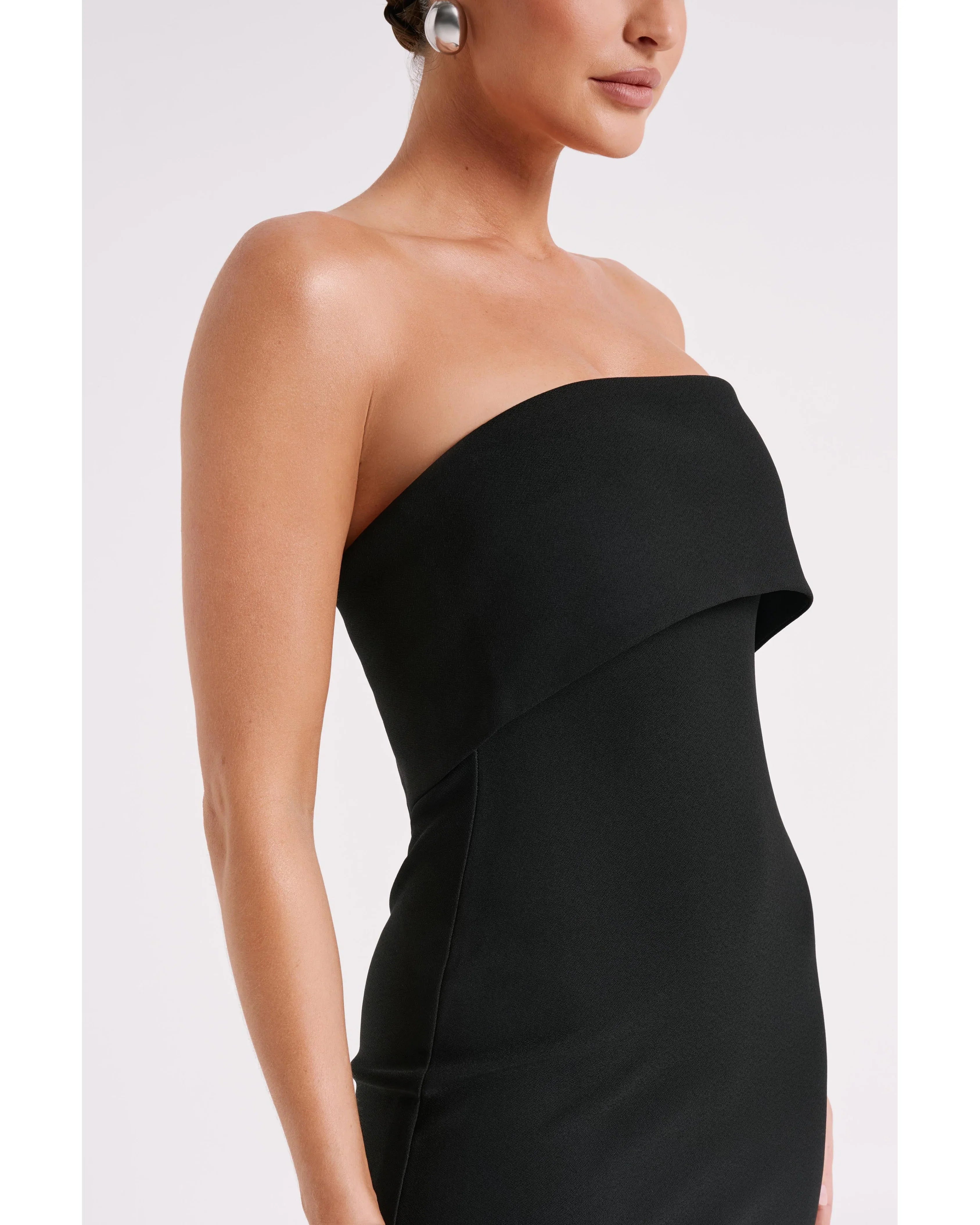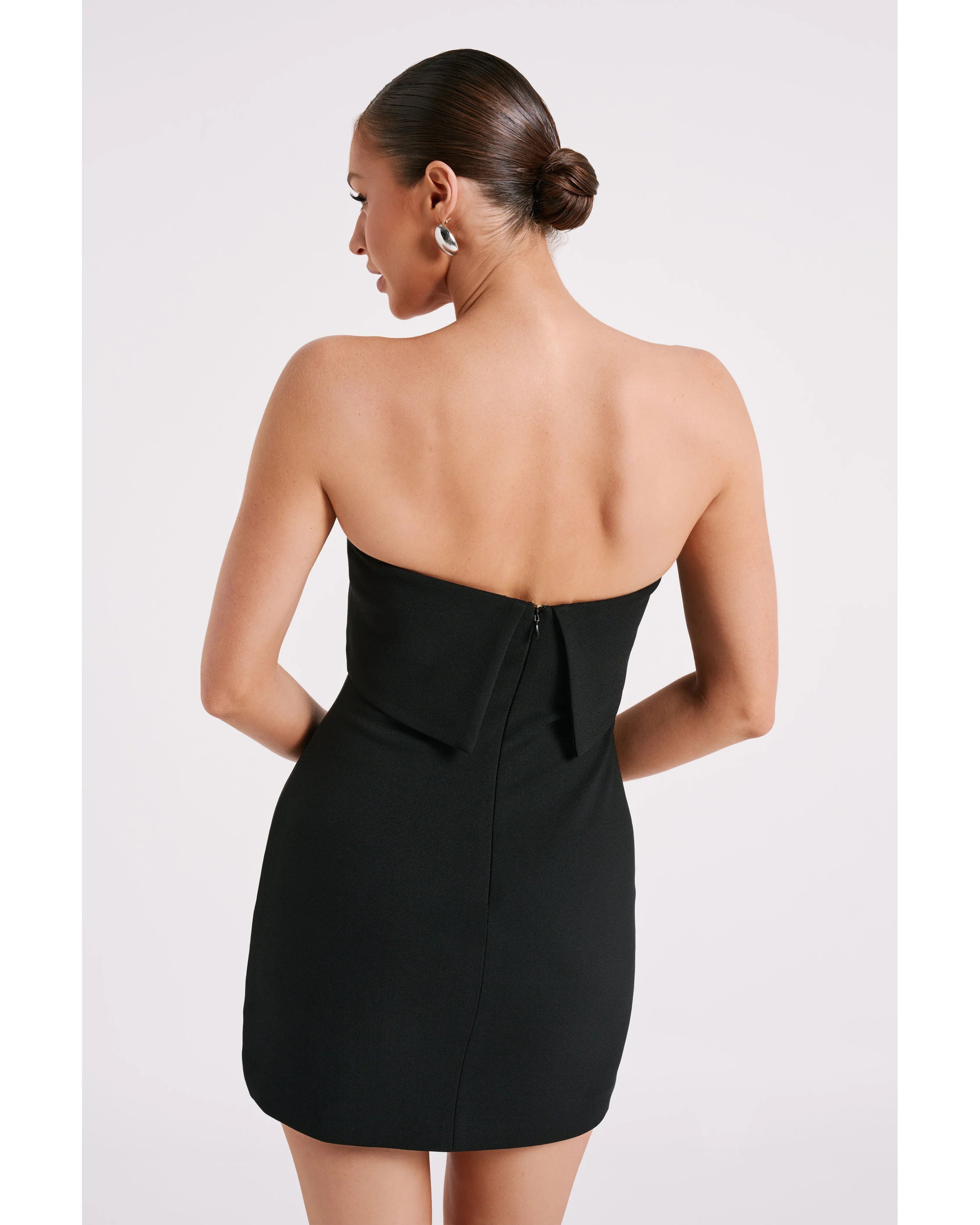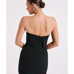 The MARISKA is a strapless mini-length dress that features a bodycon waistline with a bardot neck band. It is secured with an invisible zipper at the centre back, ensuring you get to enjoy any event without any discomfort.