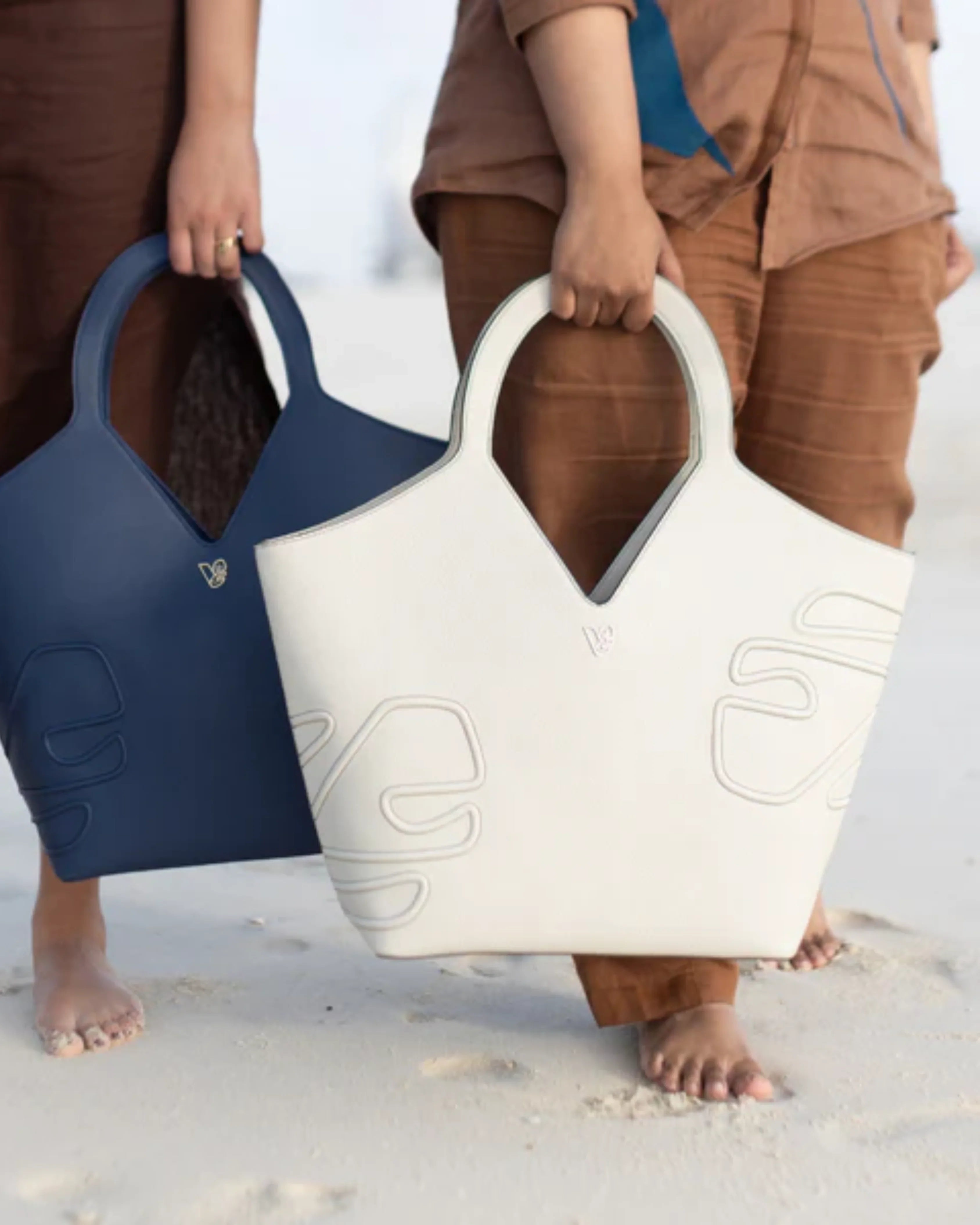 Meet the Maze Tote bag from the family of our best-seller, the Maze Crossbody bag! Inspired by the Monstera leaf, the Maze Tote is made from 18 recycled plastic bottles. It is the perfect choice for individuals navigating global adventures, daily commutes, or leisurely strolls on the beach. With ample space to accommodate all your daily essentials, it elevates your ensemble while making a positive environmental impact with this seamless fusion of fashion and sustainability.