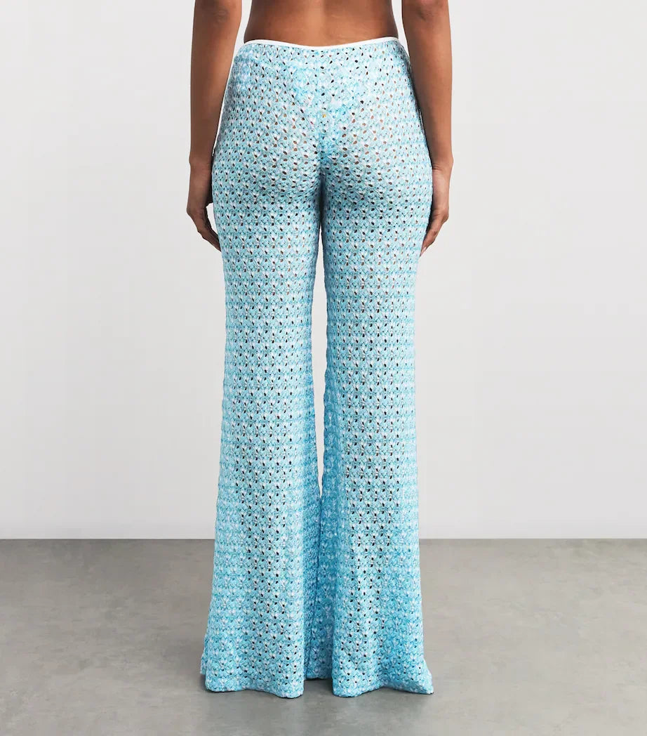 These trousers from the Spring/Summer 2025 collection are crocheted to an open construction to enhance the flowy movement of the flared shape.