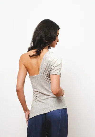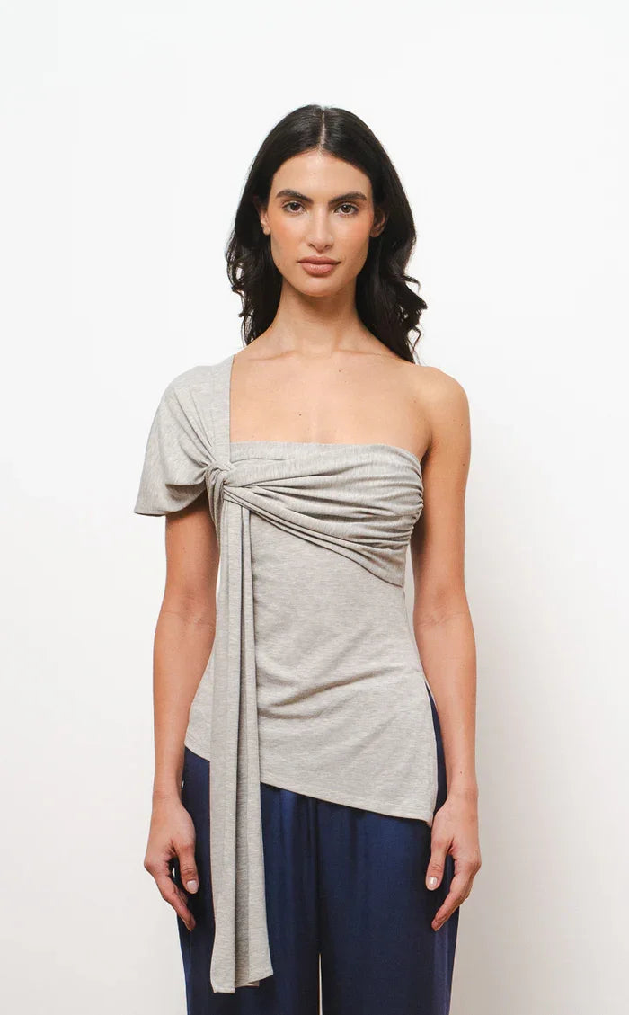 Cut in an asymmetric silhouette with a gathered knot detail, our one-shoulder Mimi Top is designed to feel soft yet sculpted. Made from a 95% cotton, 5% spandex blend, it offers gentle stretch and a smooth, breathable fit that moves with you. Style it with our Seraphina silk trousers, tailored trousers, skirts or denim for a refined look. A versatile wardrobe staple, and elevated basic.