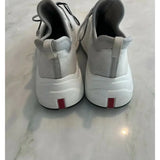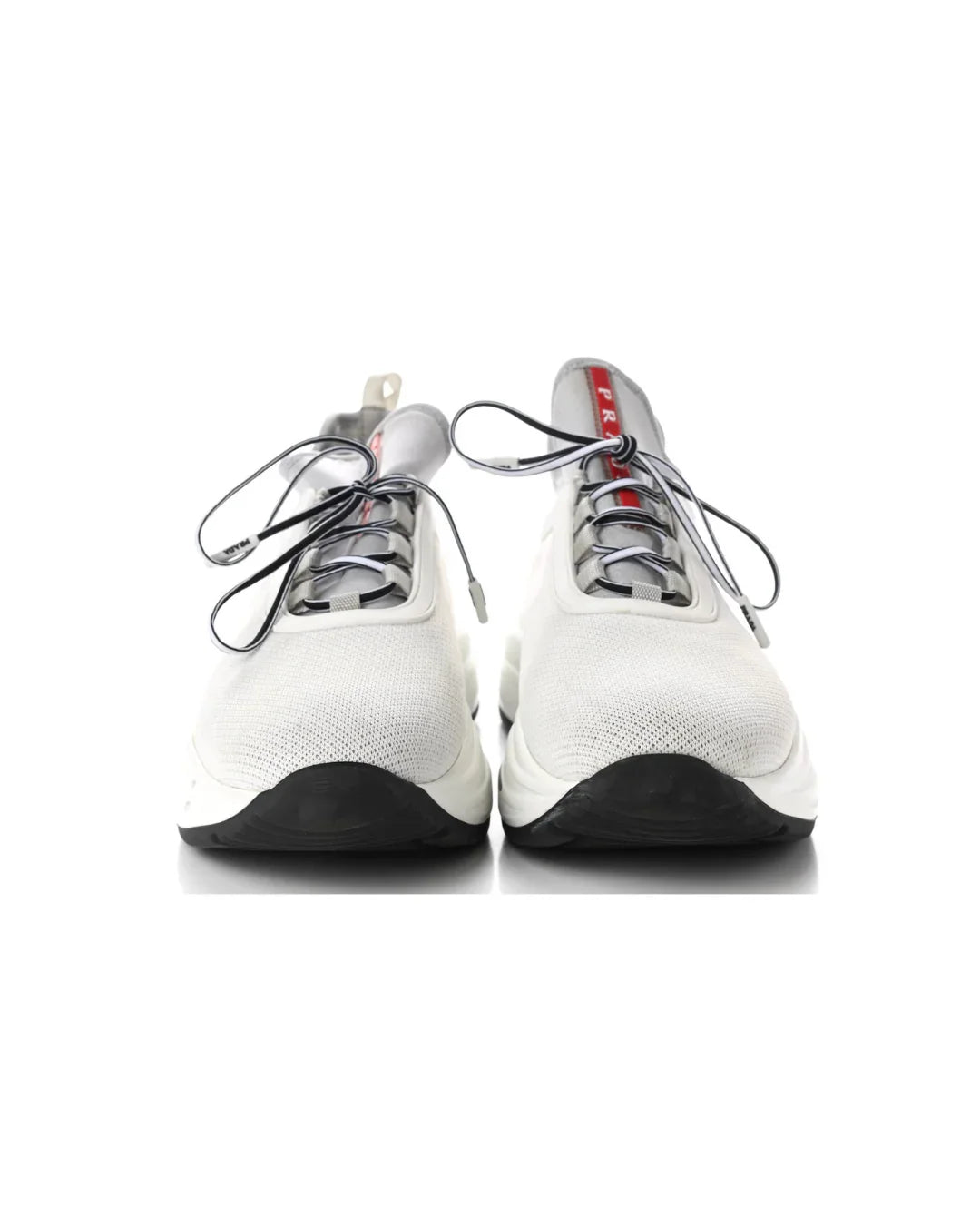 These stylish sneakers are crafted of white neoprene and mesh detailing with white rubber soles.