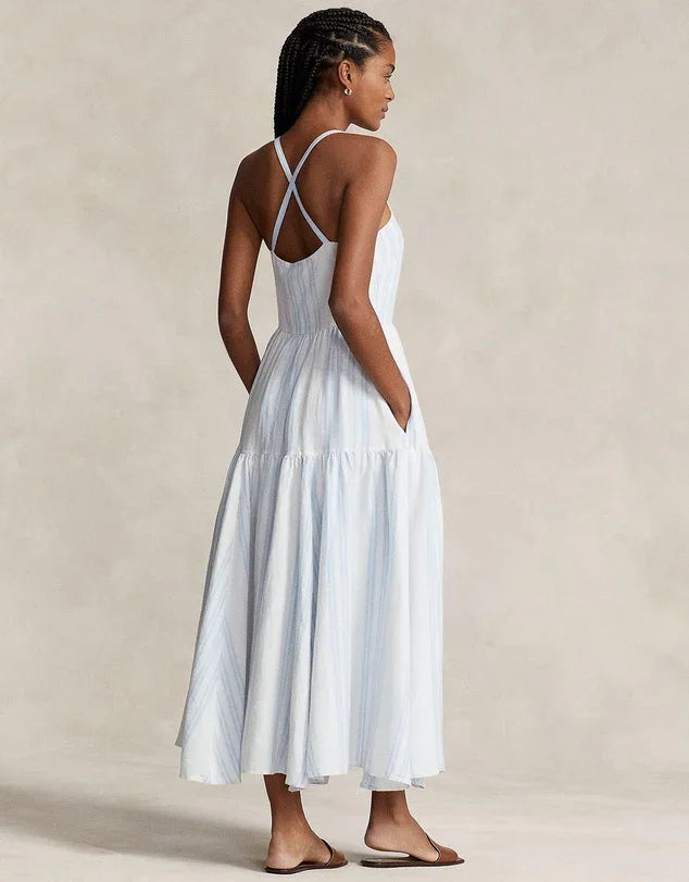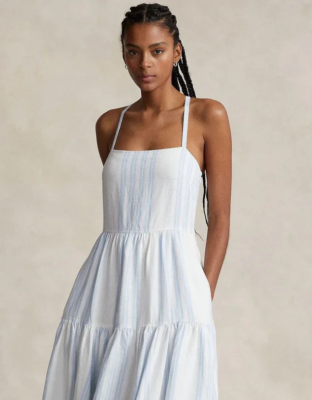 Striped Shirred Linen Dress is a classic and versatile piece for casual wear.