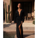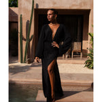 Get ready to slay the sands with the Ayana Maxi Kaftan in Black! This stylish cover up offers lightweight comfort with a touch of tropical flair. Perfect for relaxing by the sea, it's the ultimate must-have for beach babes on the go!