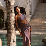 Time to take power-dressing to new, elegant heights. This sleek, tailored gown from Sakuranna is as empowering as it is devastatingly chic. Scarlett dress is designed in a one-shoulder style, with an alluring center cutout detail and sharp thigh-high side slit. Shaped to hug the figure, the Scarlett maxi dress is a statement style. Fearlessly show some skin!