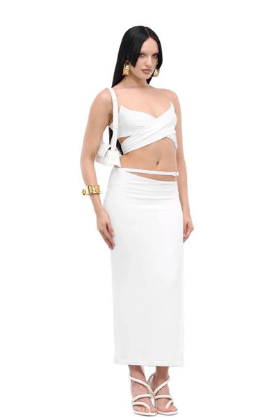 The Bandage Tank Set features a large central bow and lengthy ties that wrap around the body for a stylish and secure fit.