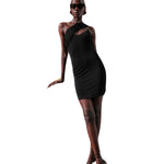 The Lama Jouni dress black features an asymmetrical shoulder design, adding a modern touch to a classic black dress. Expertly crafted and versatile, this dress is perfect for any occasion. Made with high-quality materials, it offers a comfortable and flattering fit. Elevate your wardrobe with this must-have piece.