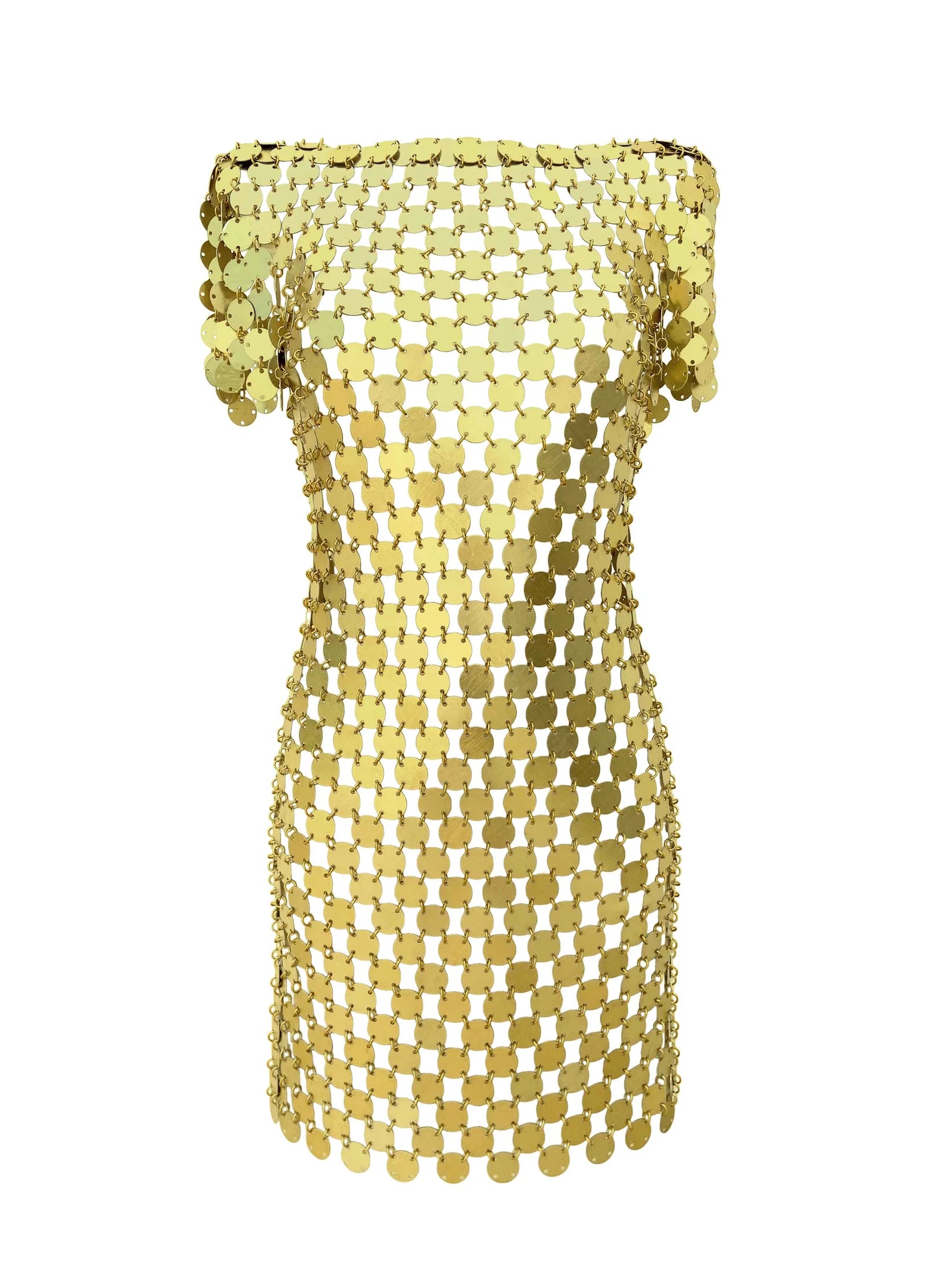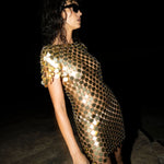 Boat neck metal dress, handwoven from recycled aluminium.
