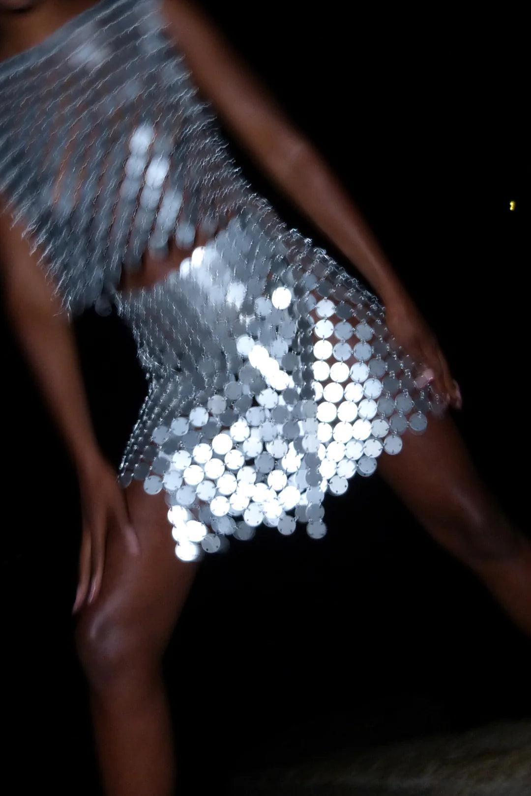 Stunning wrap style skirt, handwoven from recycled aluminium.