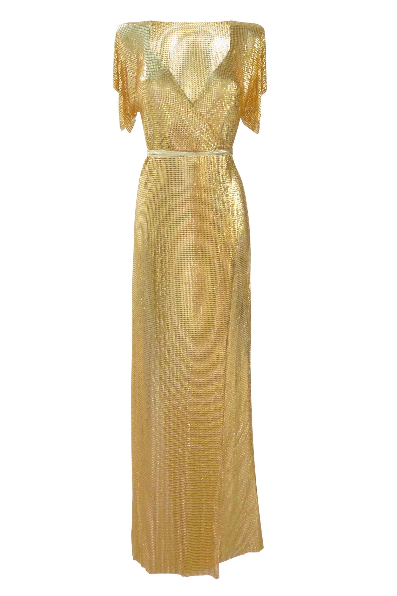 Spectacular maxi wrap-style chainmail dress, handmade from recycled aluminium.