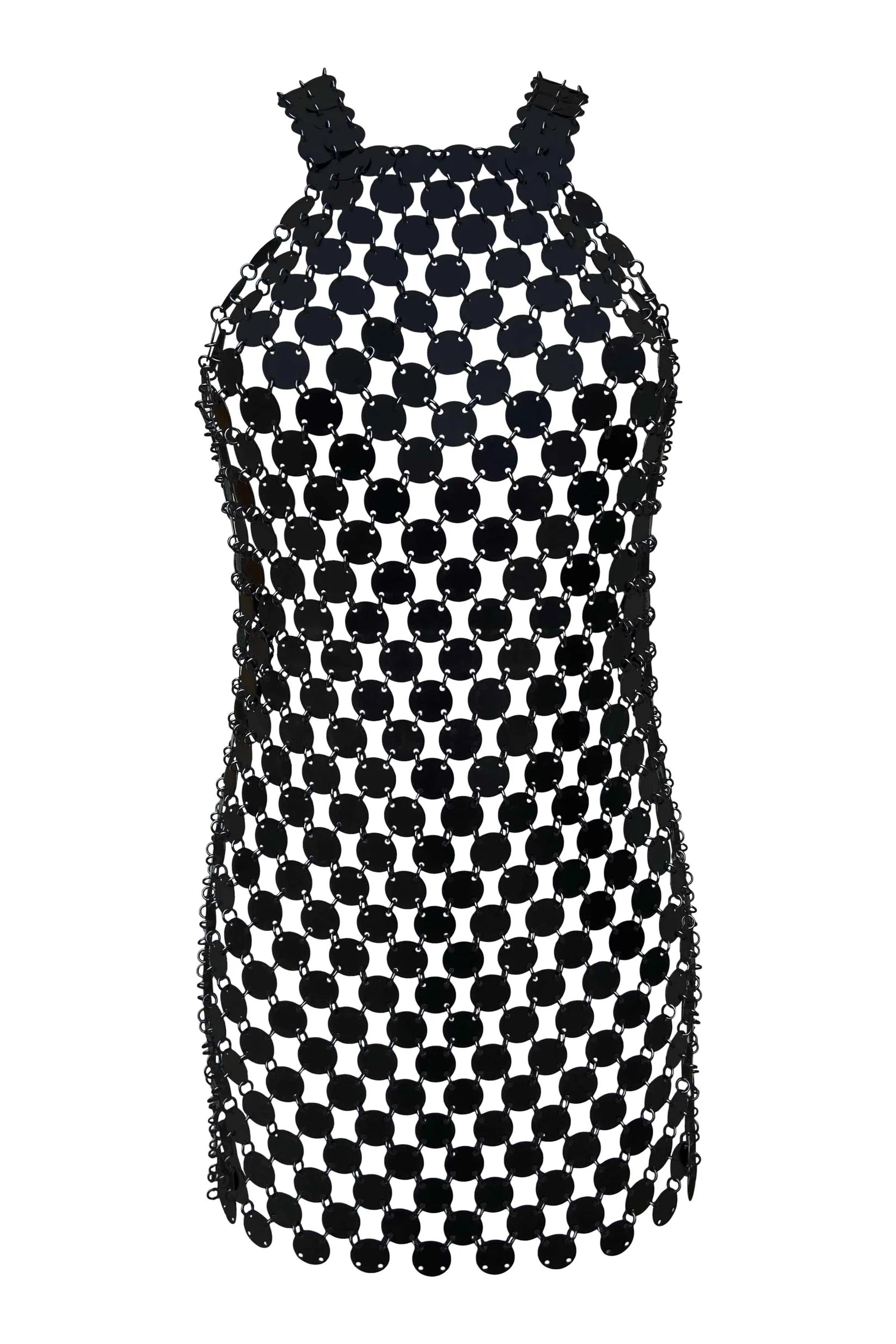 High neckline metal dress, handwoven from recycled aluminium.